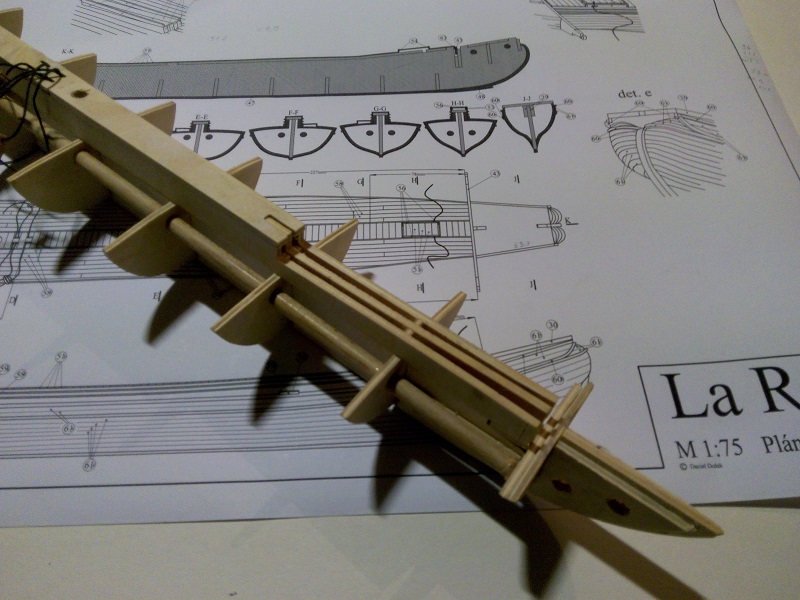 Witam dzięki dokumentacji otrzymanej od Kazika rozpocząłem budowę hiszpańskie galery La Real. Model w skali 1:55, długość modelu wynosi ok 102 cm.