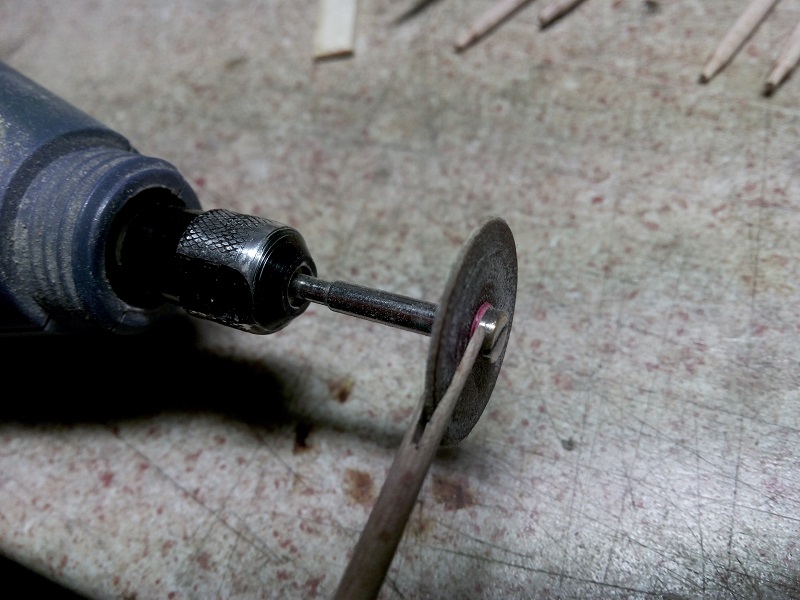 Cześć wioseł ciąg dalszy trzonki nacięte w klin piłą włosową następnie szlifowane na małej tarczy