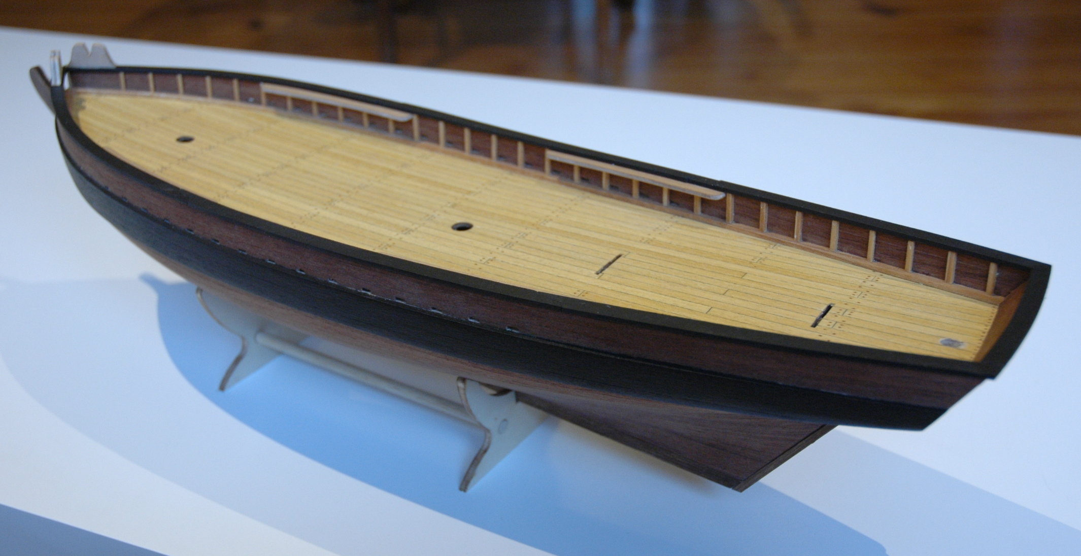 Rozpocząłem prace przy detalach pokładu i burt.
