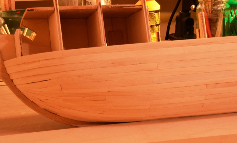 żadnym wypadku nie ciągnijcie pierwszych listewek za daleko w stronę stewy rufowej. Te listewki im będą krótsze tym lepiej dla nas.