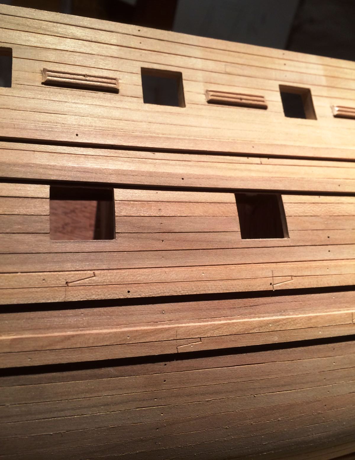 Po zakończeniu odbojnic zabrałem się za wykonanie furt działowych i pokładu.