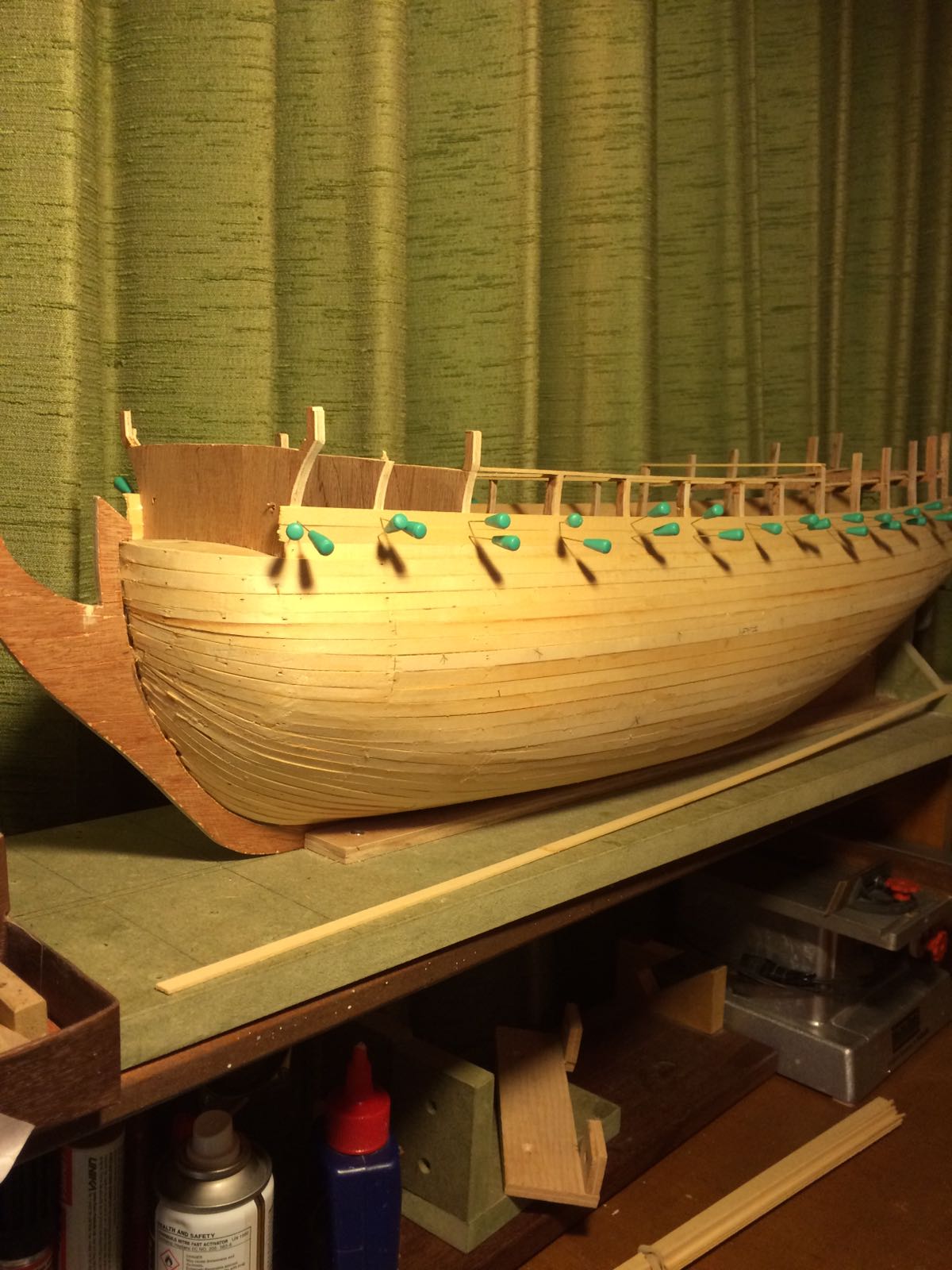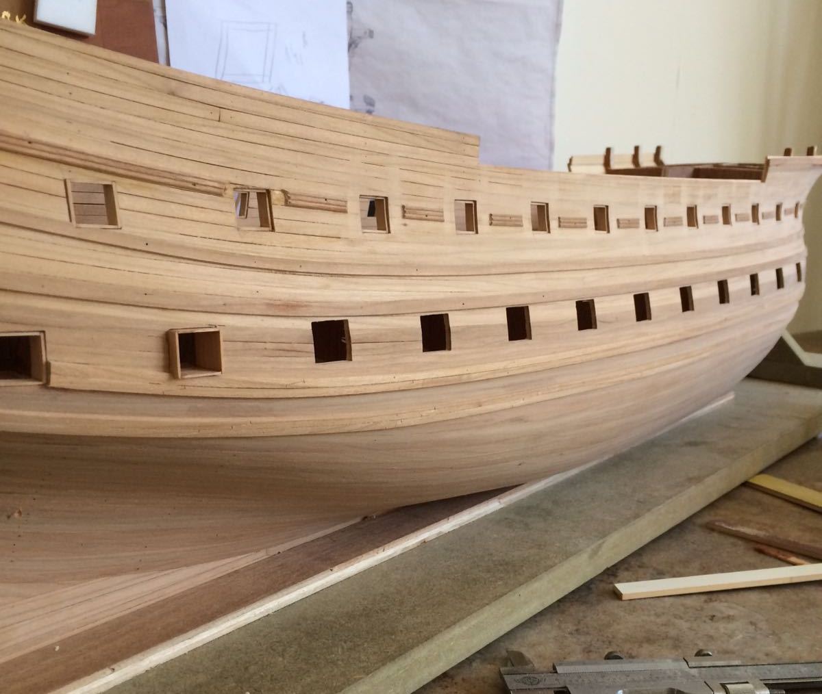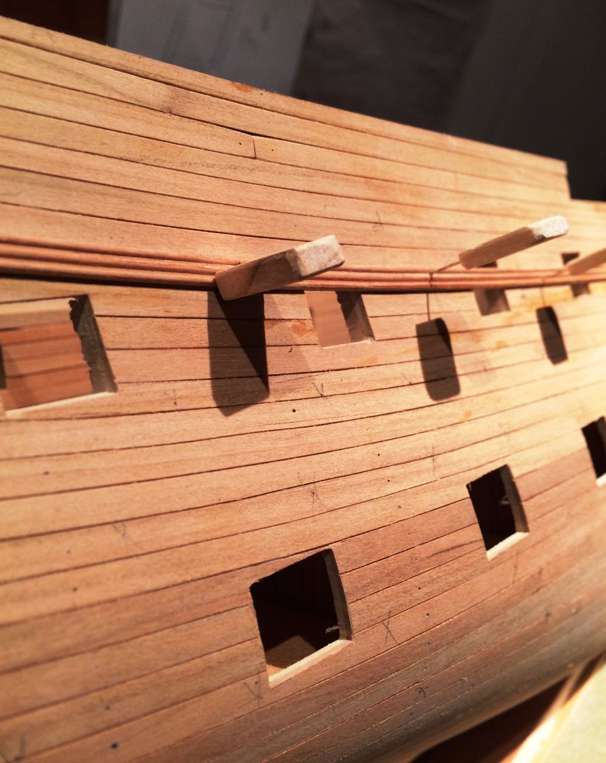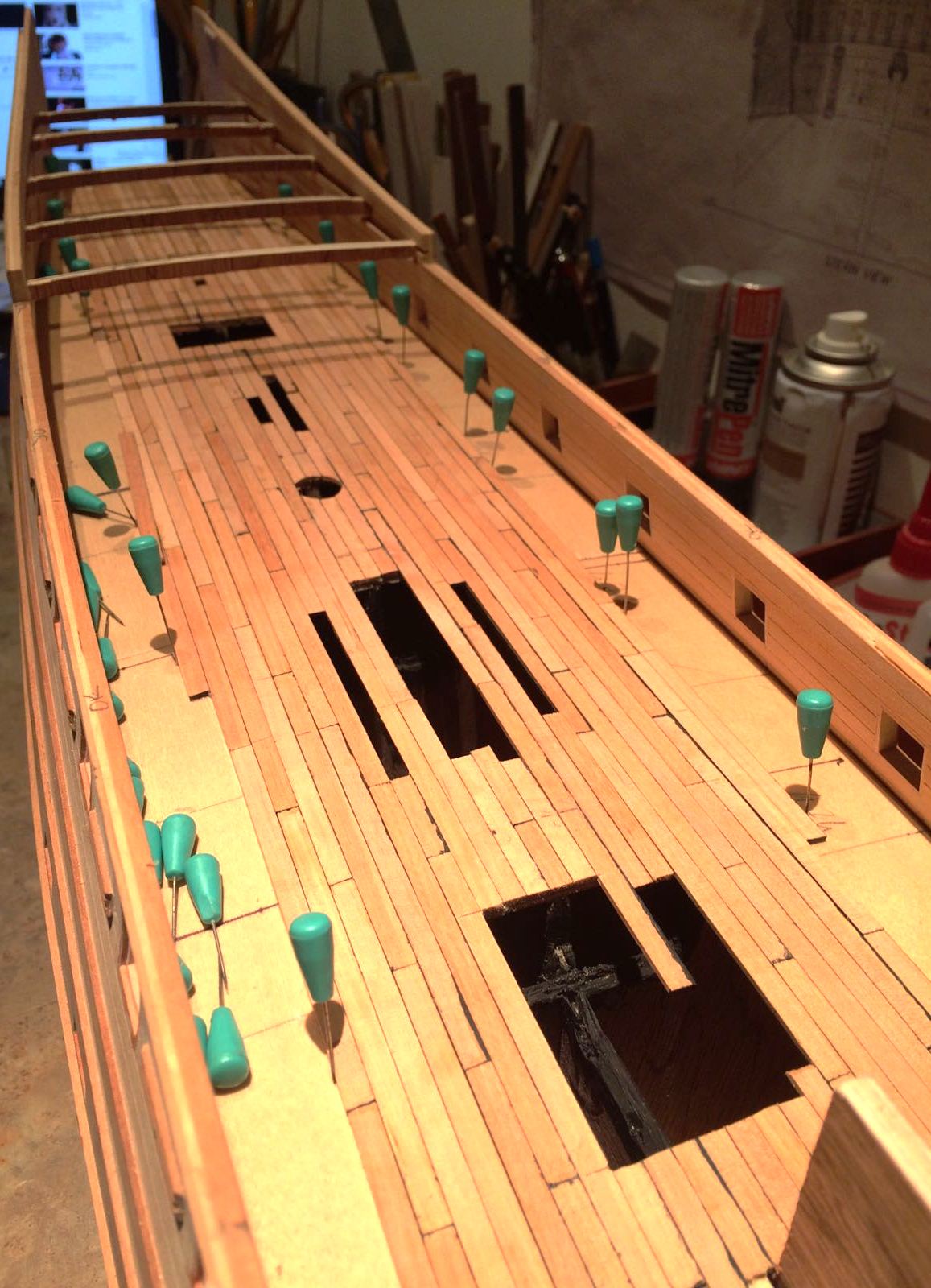 Po zakończeniu odbojnic zabrałem się za wykonanie furt działowych i pokładu.