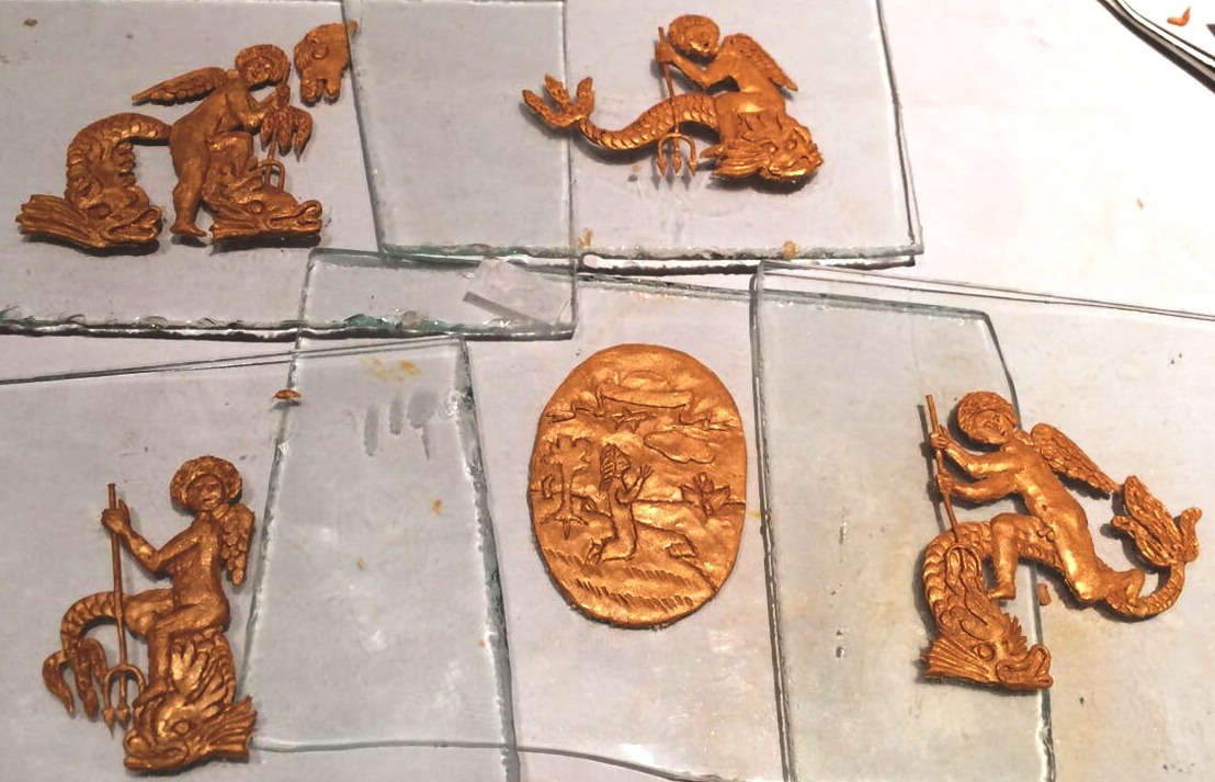 Witajcie ponownie. Przyszła pora na rzeźby na rufie. Teraz pokażę mój sposób. Ponieważ figurki są bardzo małe stwierdziłem, że nie jest możliwe ich wyrzeźbienie z drewna i posłużyłem się masą do utwardzania w piekarniku.