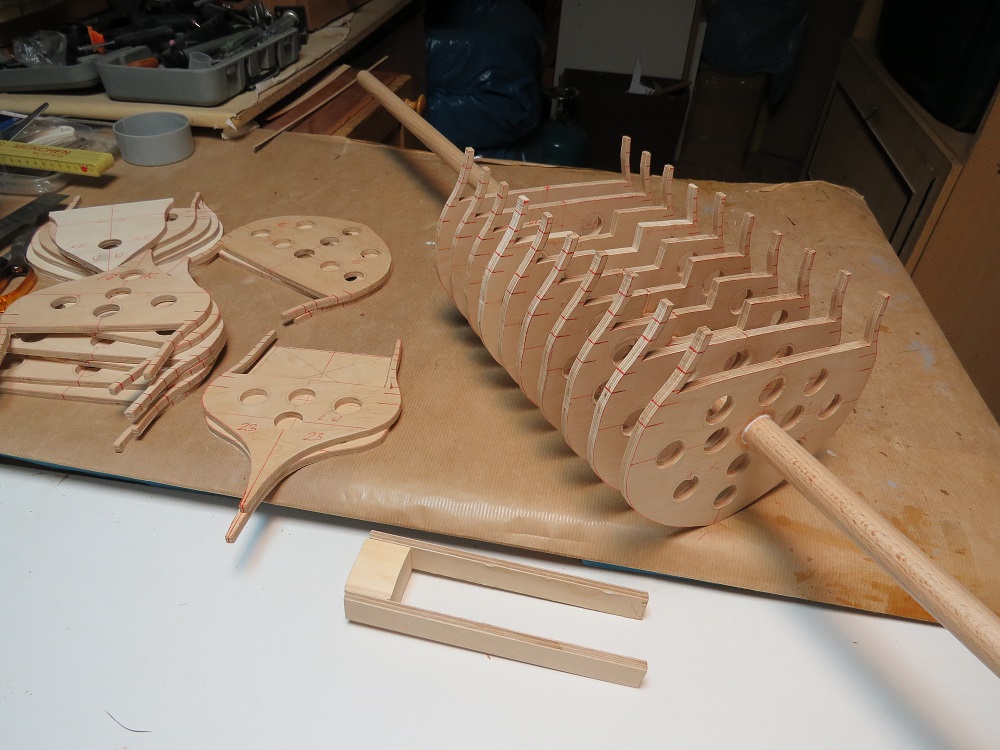 Witaj.Cieszę się na tą relację .Zaciekawił mnie szczegół osadzenia żeber.Nie osadzasz na stępce tylko elementy wklejasz pomiędzy zebra .Czym to jest podyktowane .Czy mimo to uzyskujesz osiowość i czy konstrukcja kadłuba nie wichruje się .Pozdr.R