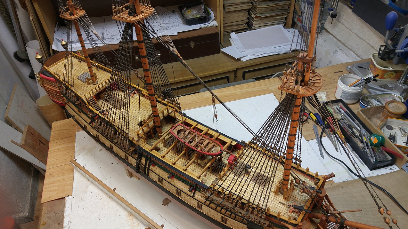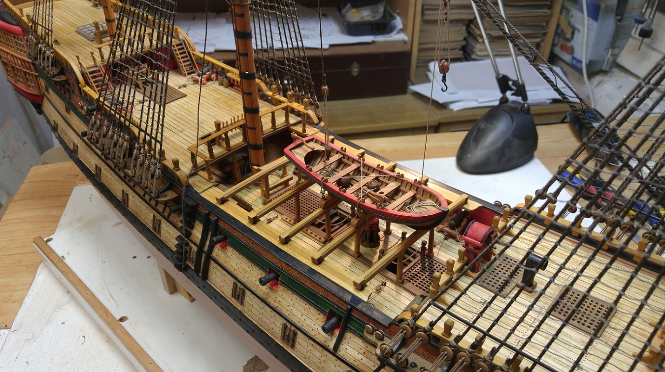 Tym razem szalupa.Aby nie zasłaniać zbytnio śródokręcia,jedna sztuka wystarczy.Doszły wieloliny oraz wyblinki drugiego piętra.