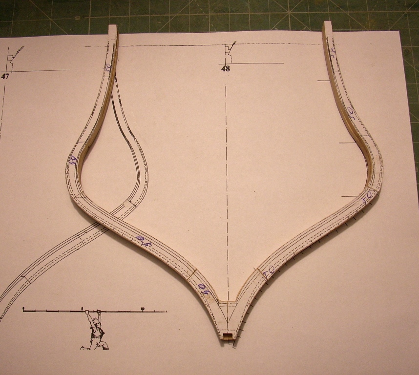 A nie wygodniej by było wyciąć dwie różne wręgi ( jak na rysunku przednia i tylnia ) i sklejać na planie i wtedy miejsca styku tych wręg pokazują Ci dokąd masz szlifować . Jest to wygodniejsze , moim zdaniem , i dokładniejsze . Nie trzeba tyle rezać tego drewna .