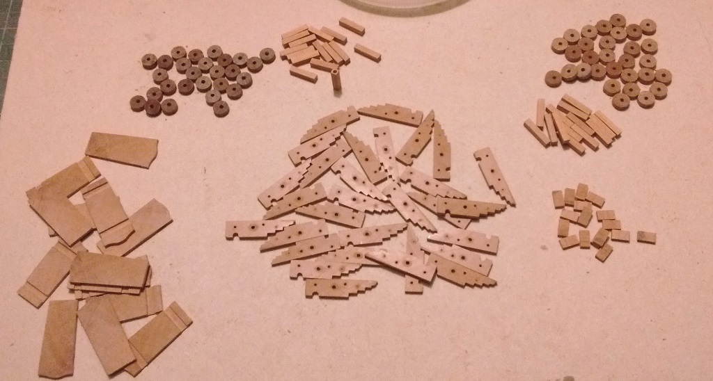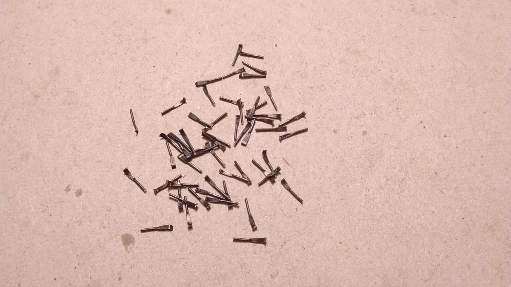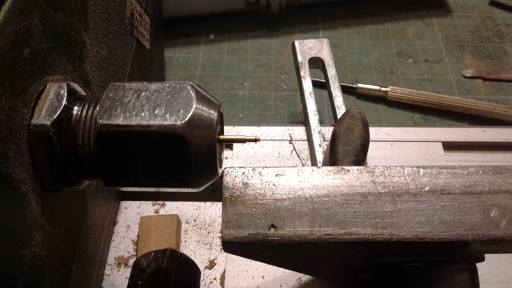 trzpienie do oski kół to drut miedziany 0,5mm oraz próba wykonania śruby pręt mosiężny 1.5mm wytoczona podkładka i śruba a końcówka lekko zeszlifowana by imitowała nakrętkę wygląda to tak sobie ale po kilku próbach będzie ok mam do zrobienia takich około 60 szt więc wprawy nabiorę :D