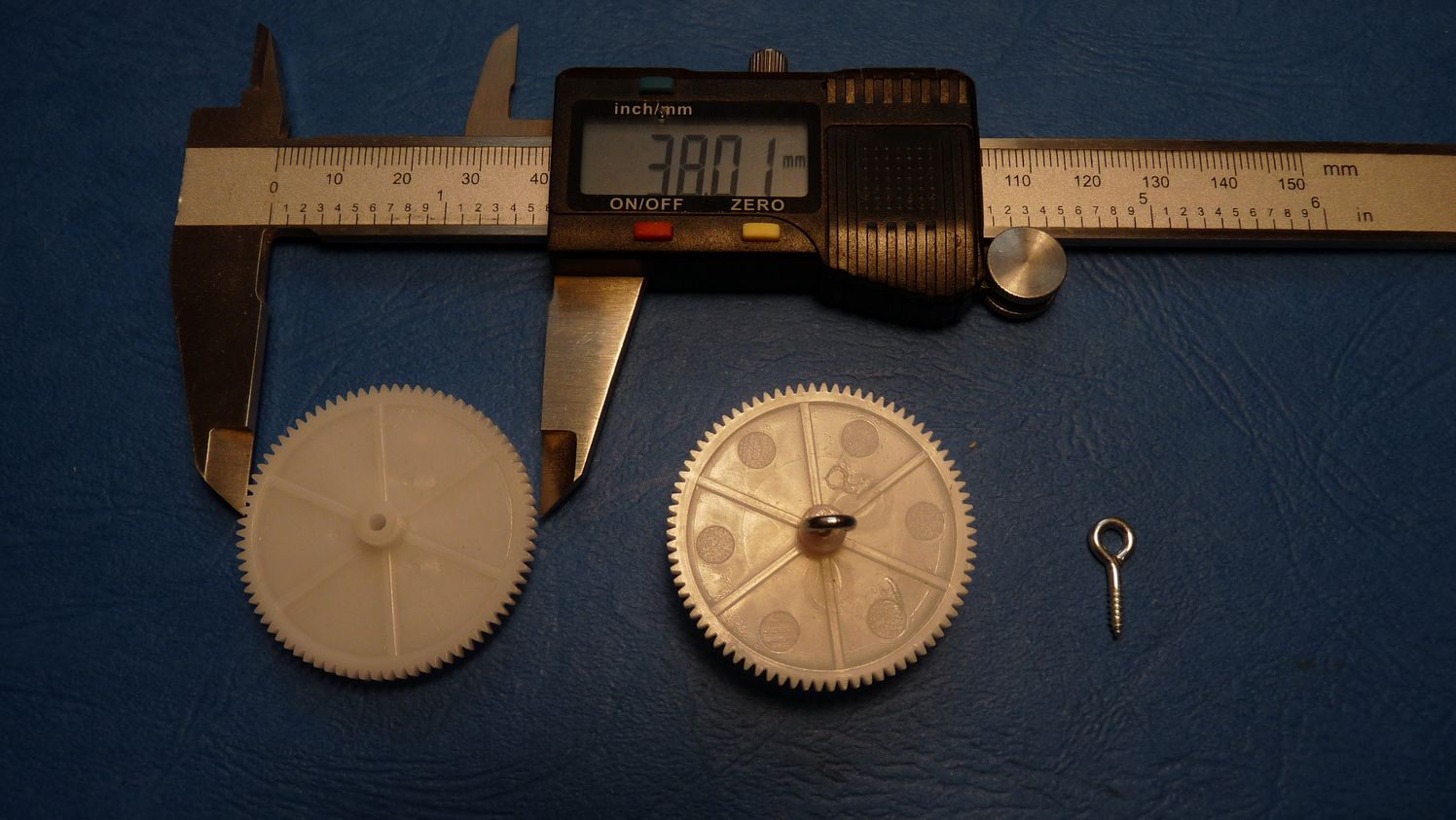 Koła zębate kupiłem u chińczyków za ok. 10 zł. Z jednej strony zamontowałem haczyk a z drugiej małe łożysko.