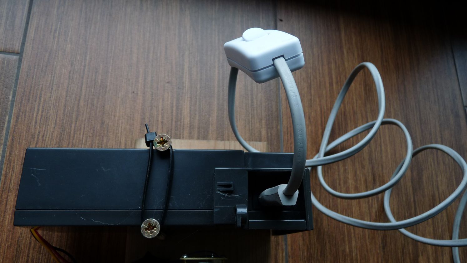 Silnik i transformator pochodzą ze starej drukarki, z której można wydobyć chyba z pięć różnego rodzaju silniczków. Tak zmontowany napęd podłączamy do prądu 230 V