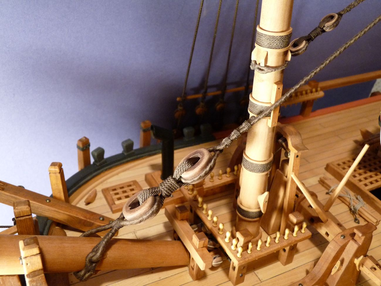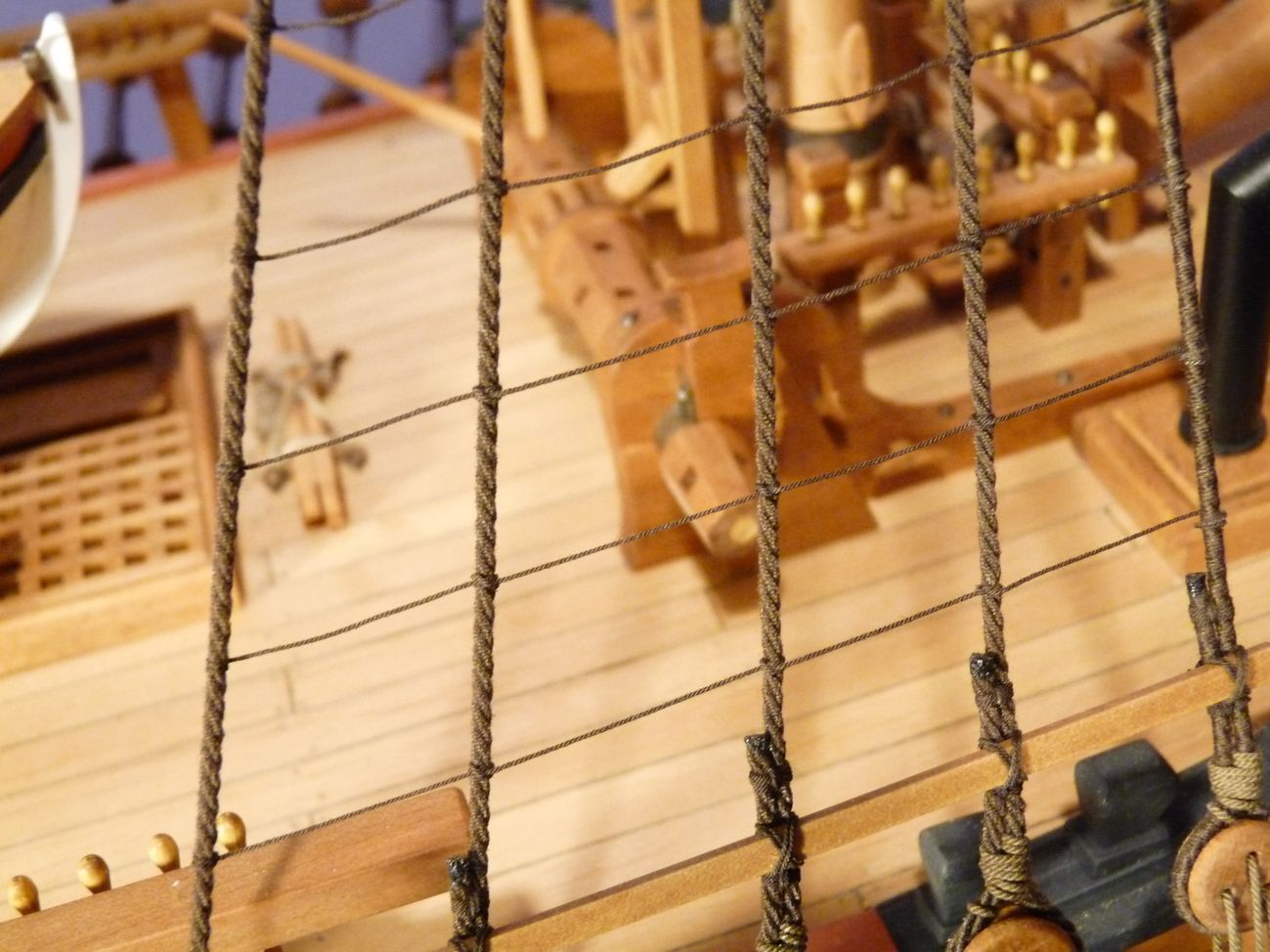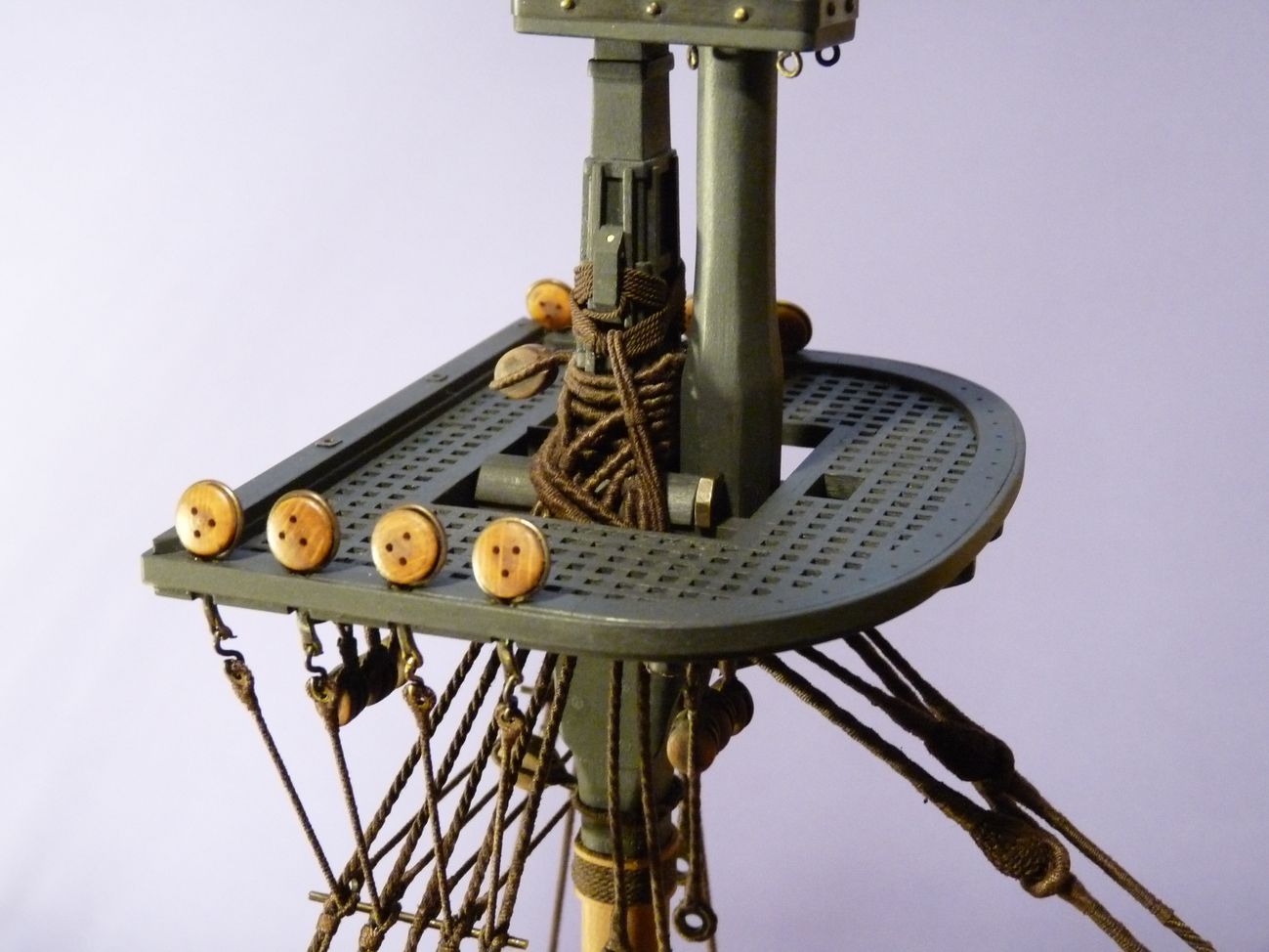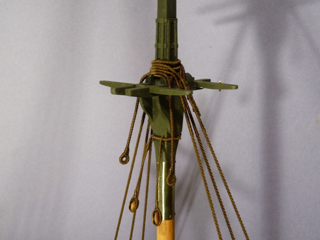 Kolor poszczegolnych linek olinowania zalezny jest od Ciebie - to Twoj model, pamietaj jednak, ze tak wanty jak i wyblinki nalezaly do olinowania stalego - czyli kolor ciemny (prawie czarny) - tzw. smola sztokholmska.