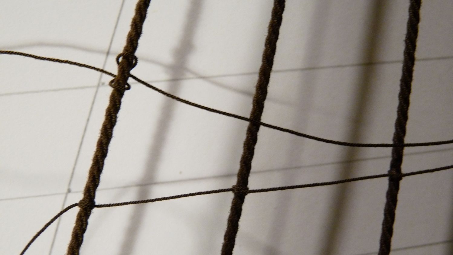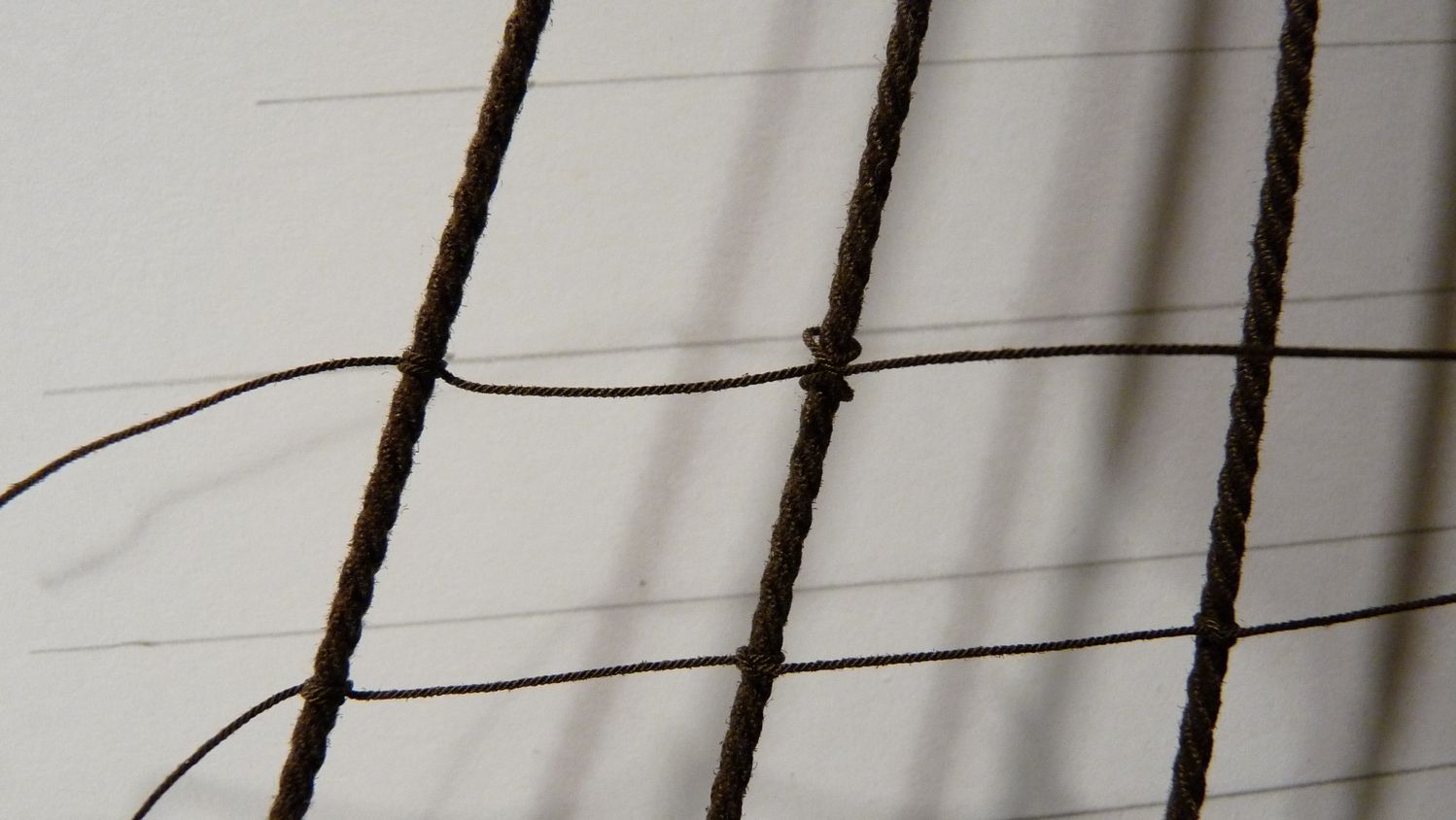 I ostatnia wanta z supłem z tyłu wanty. Przed odcięciem nadmiaru sznurka wiązanie lekko smaruje rozcieńczonym wikolem.