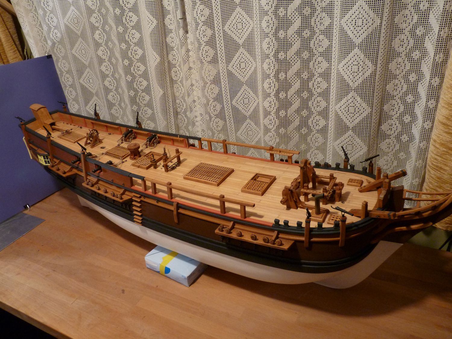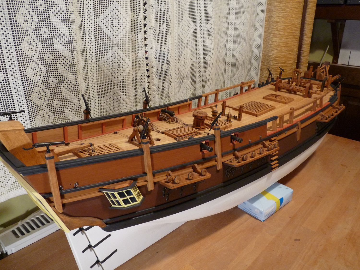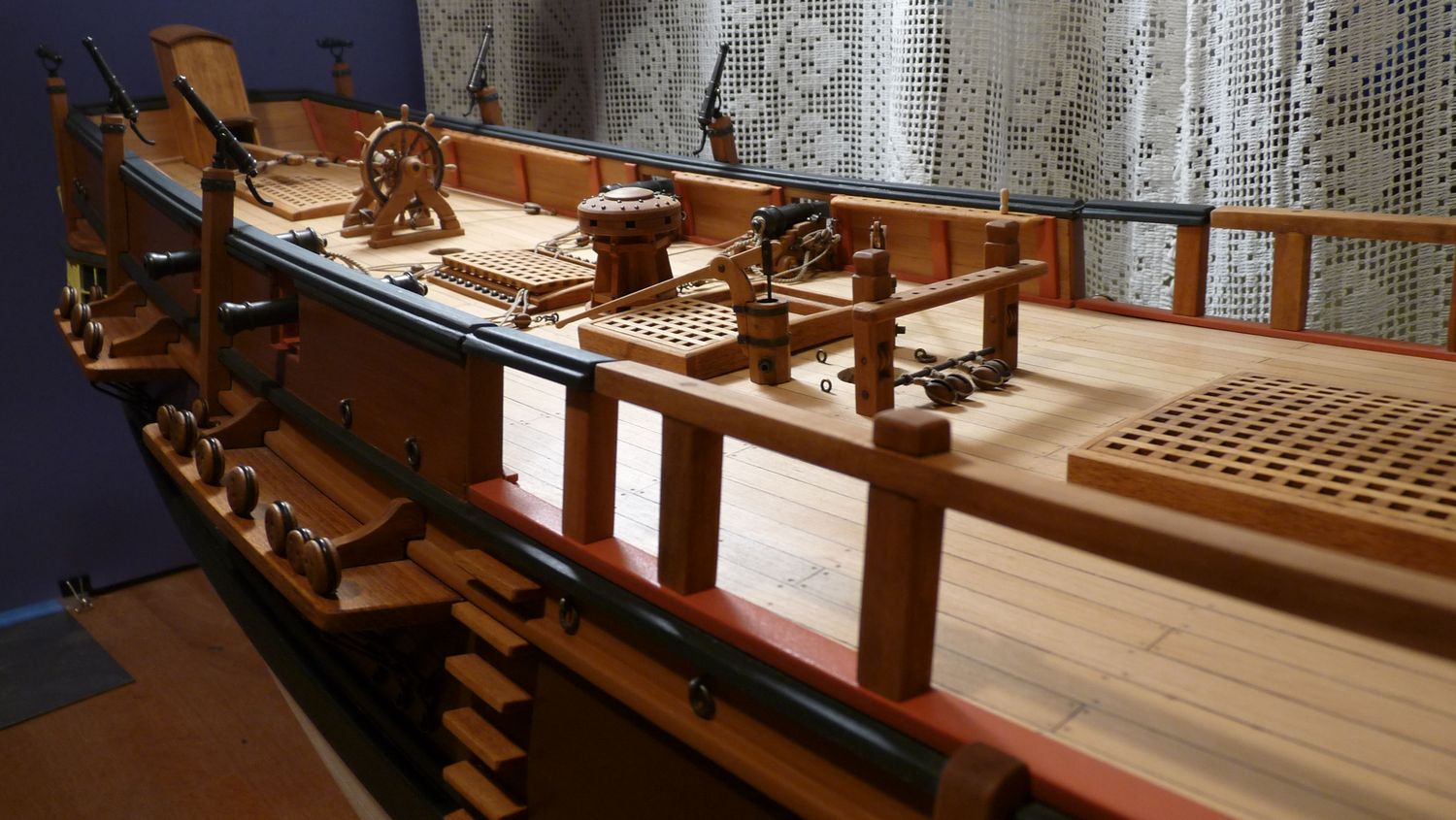 Falkonety zamontowane na swoich miejscach. Bounty ma barierki na śródokręciu i otwierane wejście na pokład.