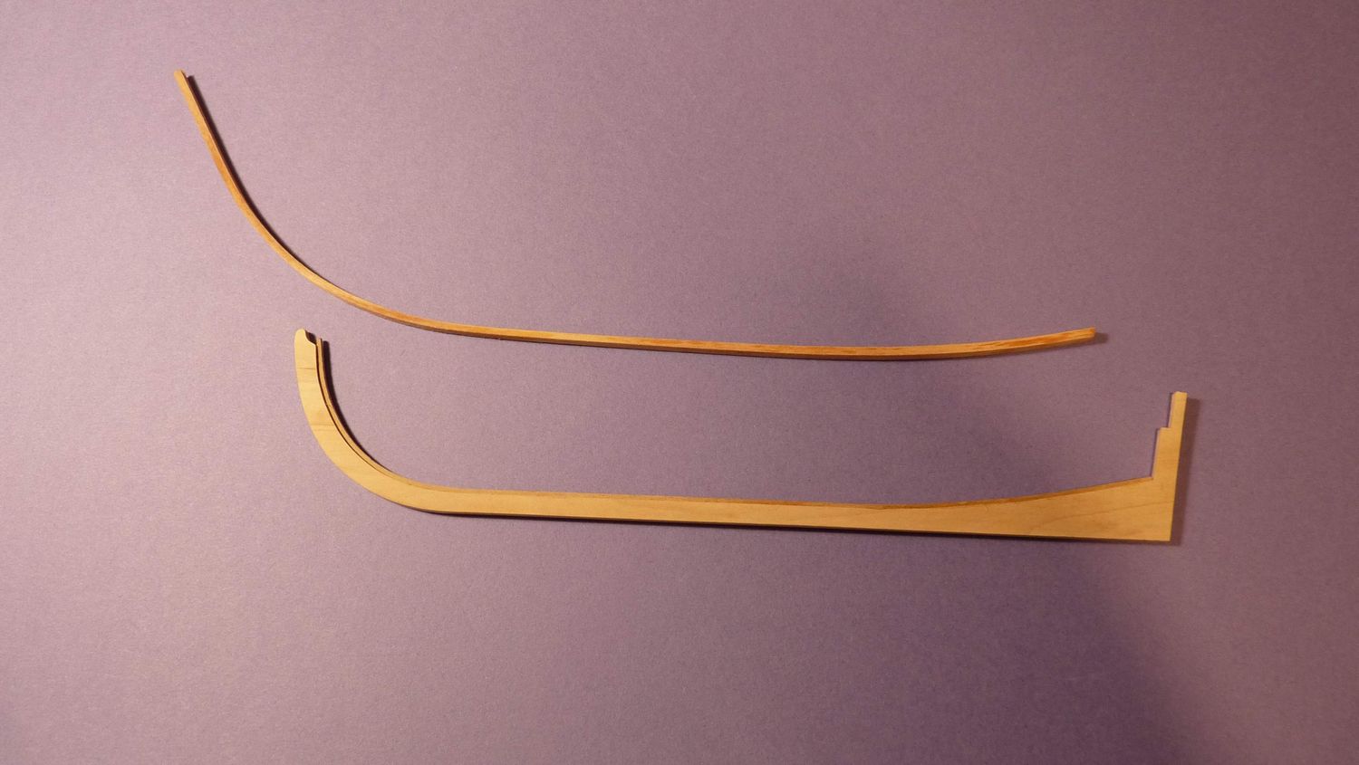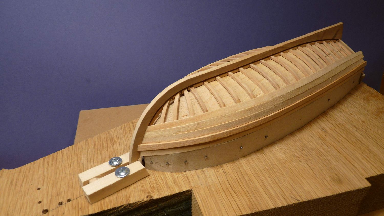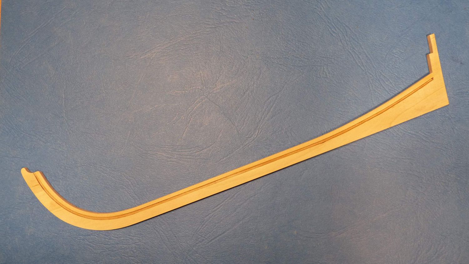 Materiał jaki użyłem to grusza na stępkę, listewki lipowe 5x1 na poszycie i olcha na odbojnicę.