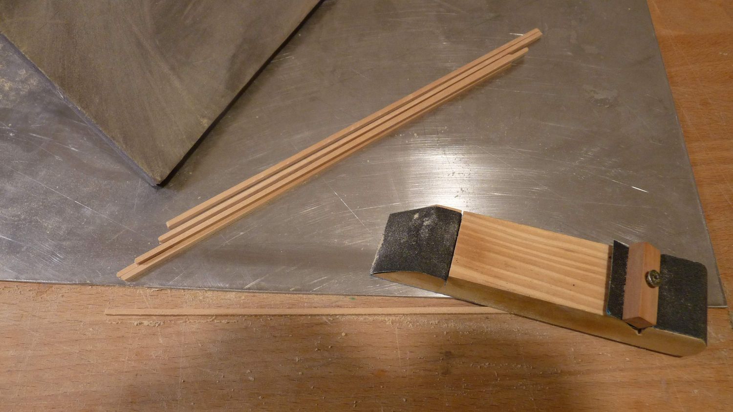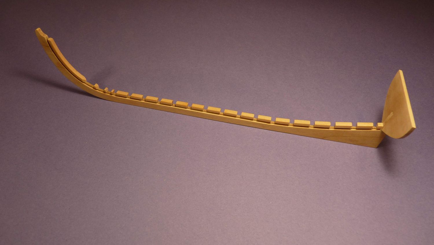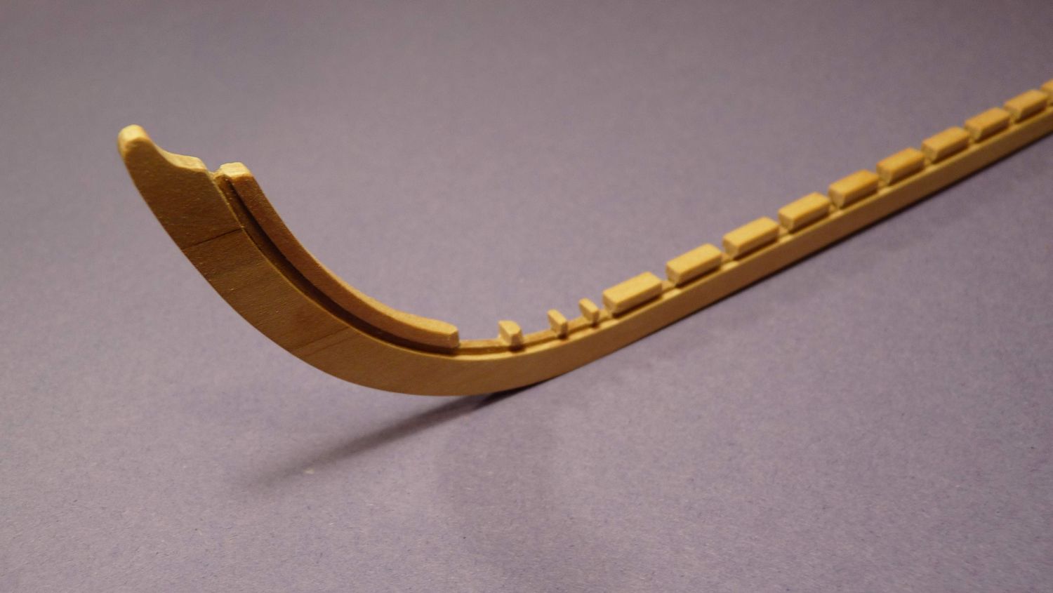 Materiał jaki użyłem to grusza na stępkę, listewki lipowe 5x1 na poszycie i olcha na odbojnicę.