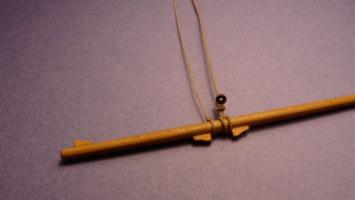 Te kołeczki wypiłowałem na półokrągło żeby dobrze przylegały po przyklejeniu do rei.