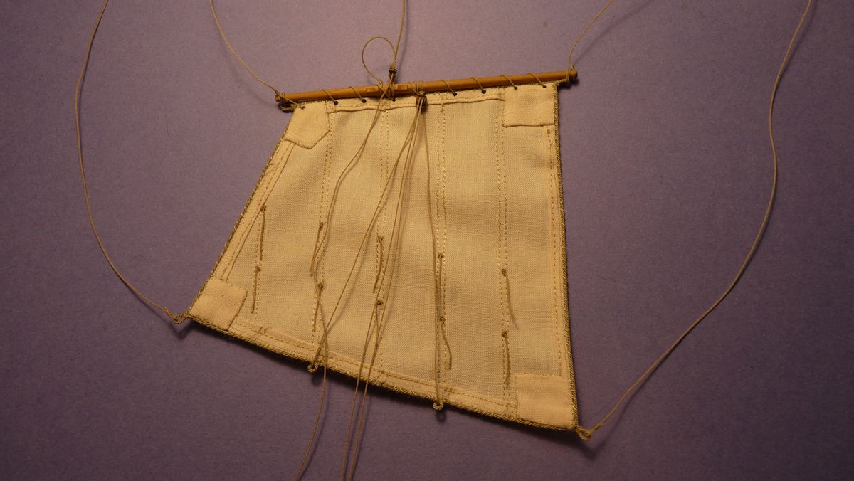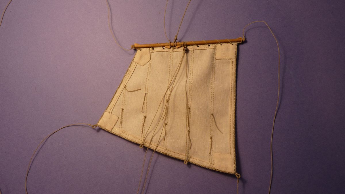 Pierwszy żagiel powieszony i przygotowany drugi.