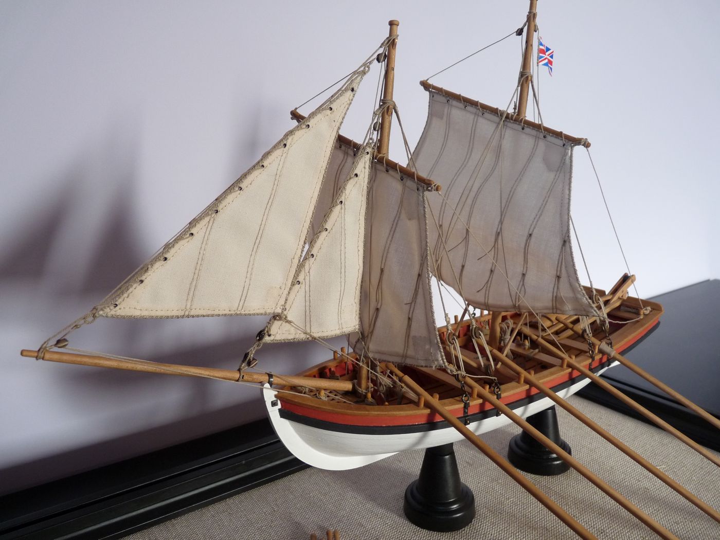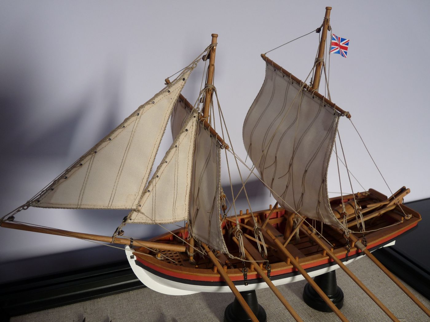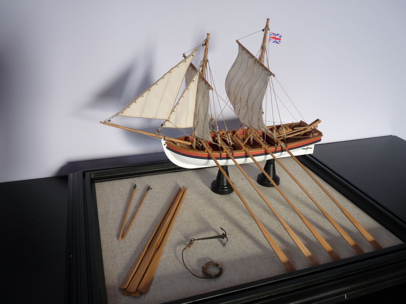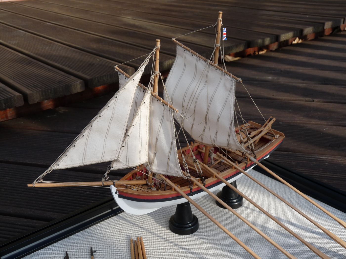 „Proponuję jednakże nie kłaść tej szalupy na pokładzie, a zamocować ją na podstawie obok modelu. Oczywiście w pełnym rynsztunku.”