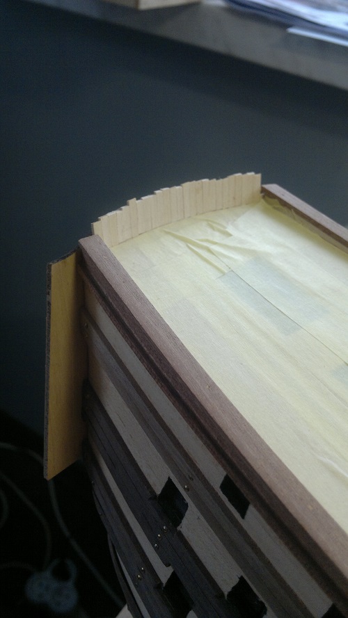 Analogicznie jak główny pokład wykonałem listewkowanie rufowej części.