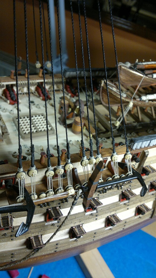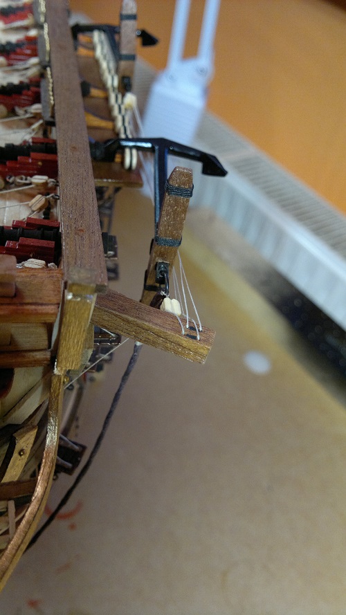 I czas na kotwicę Fajnie to tam na forach zrobiliście wzorowałem się nie raz na relacjach. Kotwica sama w sobie w miarę ok ta z zestawu ale poprzeczka do kosza. Poprzeczkę postanowiłem wykonać od nowa. Troszkę obróbki docinki i jest. Na koniec jakieś owijki dla oka:) z dołączonymi bloczkami.