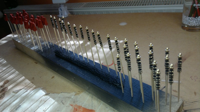 Kolejną bardzo żmudną rzeczą były bloczki szpilki z oczkami i wiązanie tego wszystkiego.