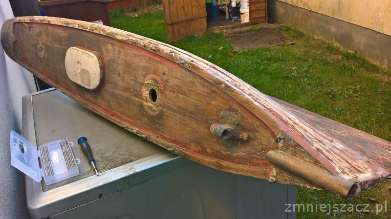 Sie robi. Bryla dosyc okazala (stolik ma 850mm). Bryla bo poza tym nima nic. Maszt do wyrzucenia, bukszpryt tez, steru niema. Cholernie ciezki ale to przez sztabe metalu na dnie kadluba. Bede musial ja usunac bo wodowany juz napewno nie bedzie. O ile wogole cos bedzie...