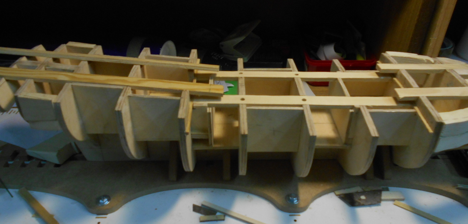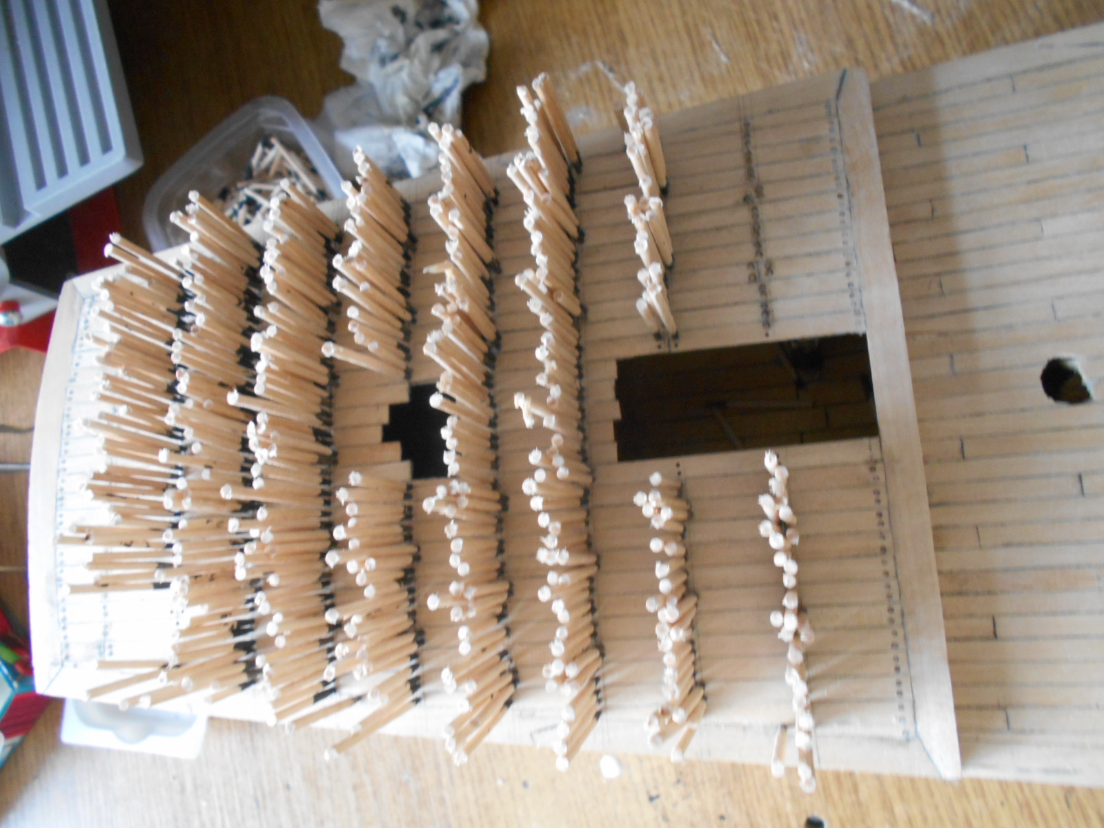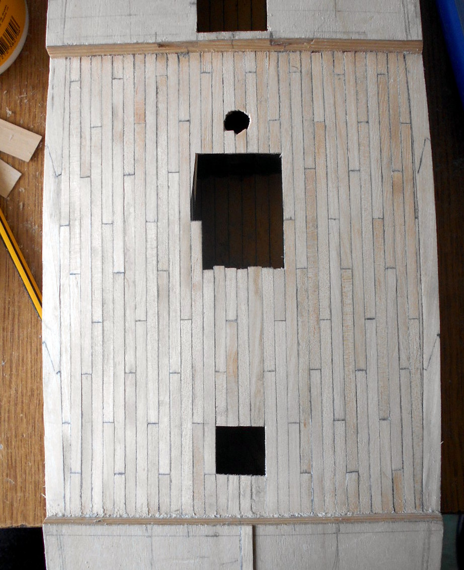 Pokłady pokołkowane. Zacząłem robić zrębnice ładowni i zejściówek.