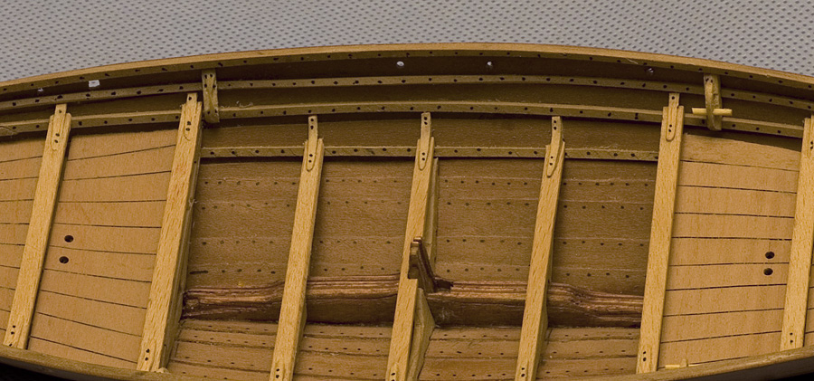 Jednak nie chciałem robić tak dużego modelu, wszak dwie poprzednie łodzie z tego okresu zbudowałem w skali 1:40, i taką też skalę starałem się uzyskać dla Skuldelev 3. No ale jak to z przeskalowywaniem bywa, nie wszystko poszło jak trzeba