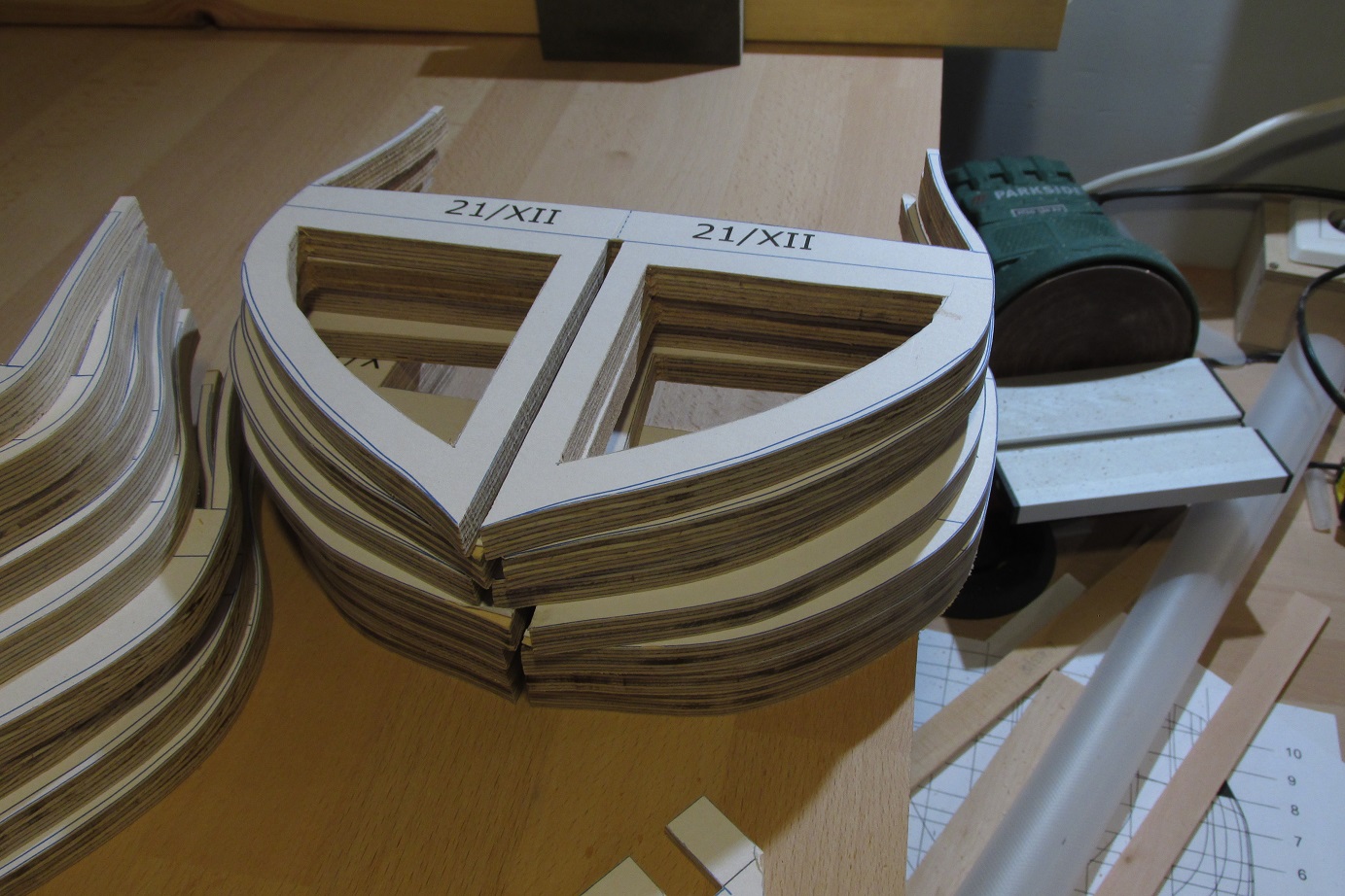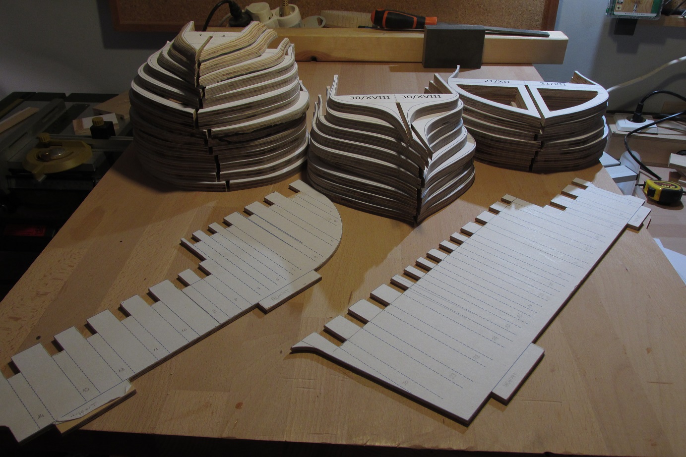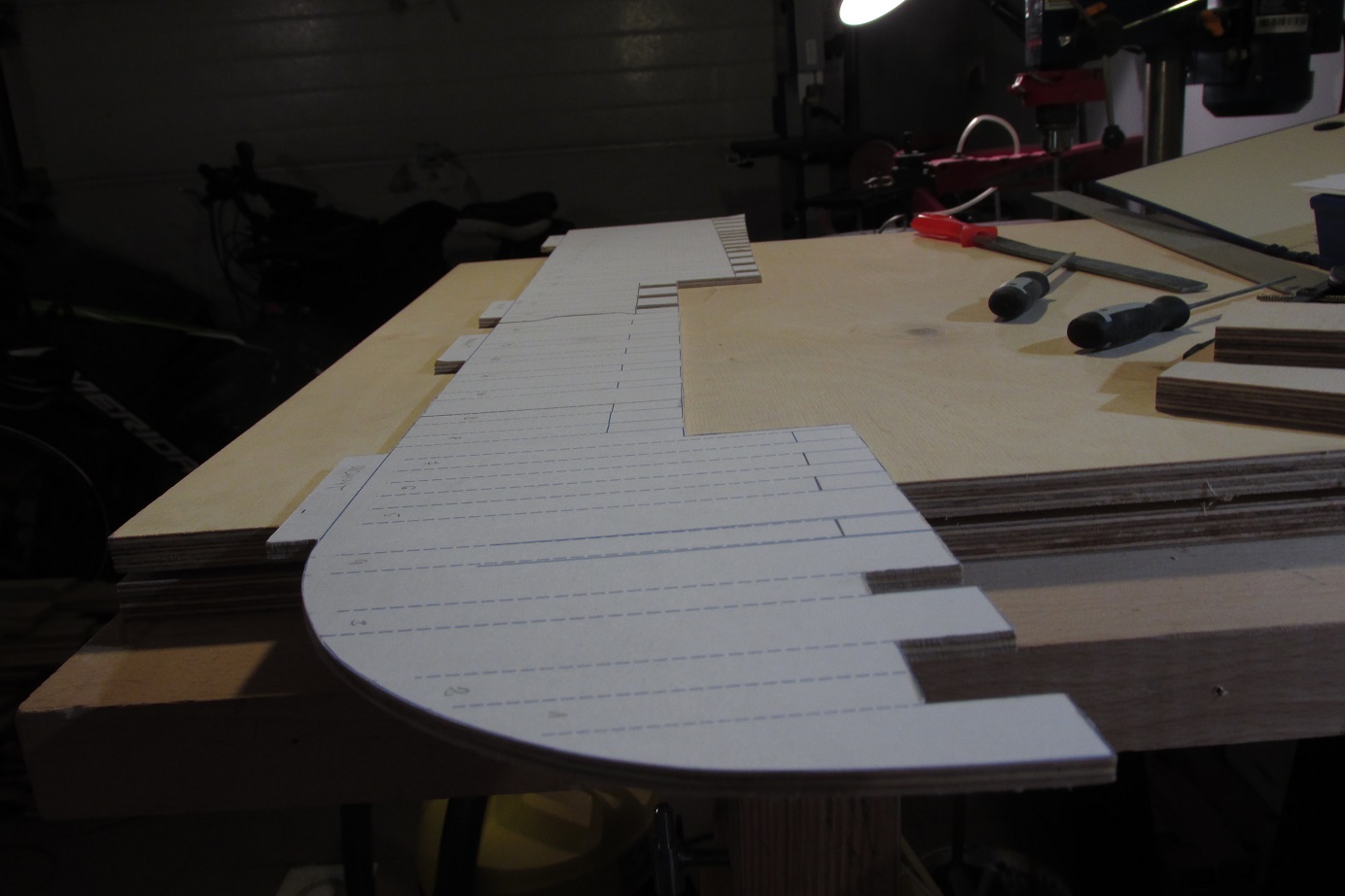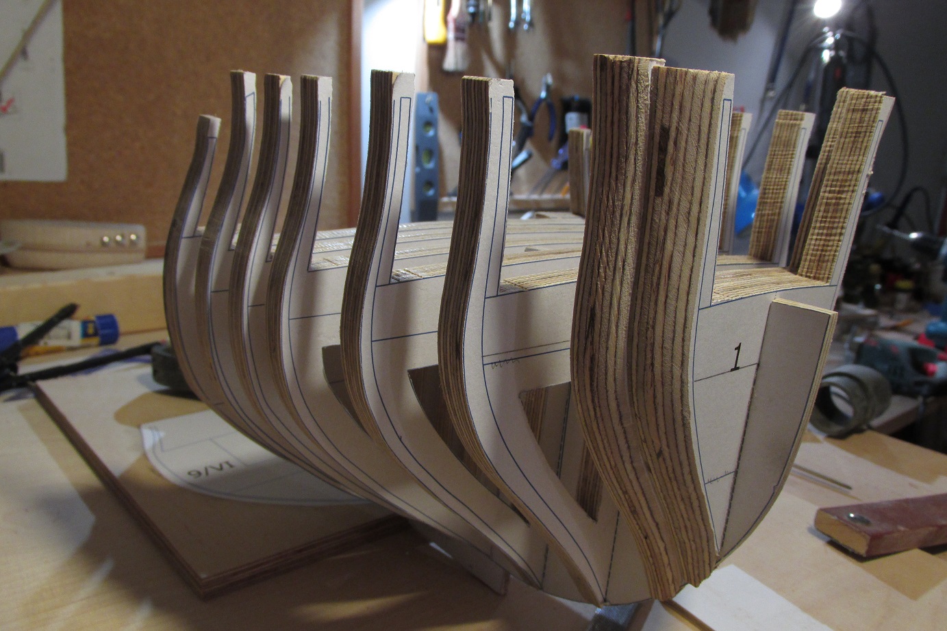 Można powiedzieć, że dziś rozpocząłem budowę HMS Enterprize. Nie wiem czy nie porywam się z motyką na Słońce, ale trzeba próbować. Mam w planach budować w skali 1:48 na grodziach. Ponieważ chcę spróbować poszycia jednowarstwowego, to dość mocno zagęszczam grodzie. Grodzie będą projektowane sposobem, który opisuje w swoim opracowaniu Gene Bodnar. Grodzie będą ze sklejki 10mm, podłużnica ze sklejki 4 mm. Na razie prace będą zlokalizowane na komputerze i pewnie chwilę potrwają