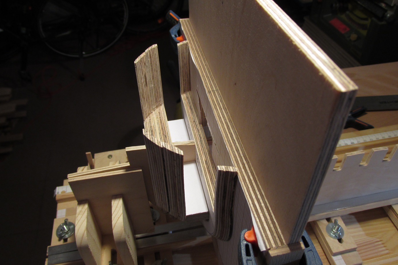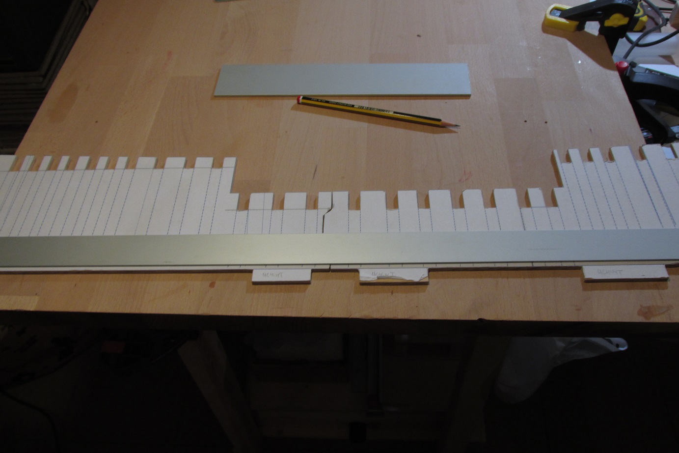 Szkielet się klei, a w przerwach podczas schnięcia kleju, przygotowywałem elementy kila. Po raz pierwszy próbowałem użyć do tego frezarki