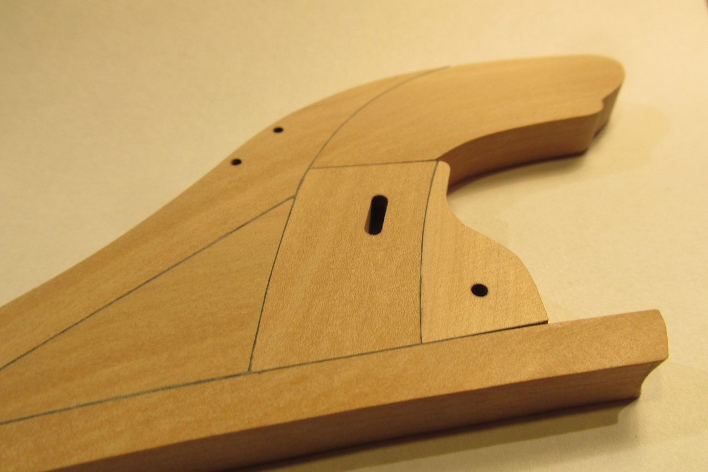 Cały czas szkielet, kil i stewa dziobowa. W szkielecie została jeszcze jedna grodź do wklejenia. Będzie potem sporo szlifowania, dopasowywania szablonu pokładu. Ale skończyłem dziś stewę.