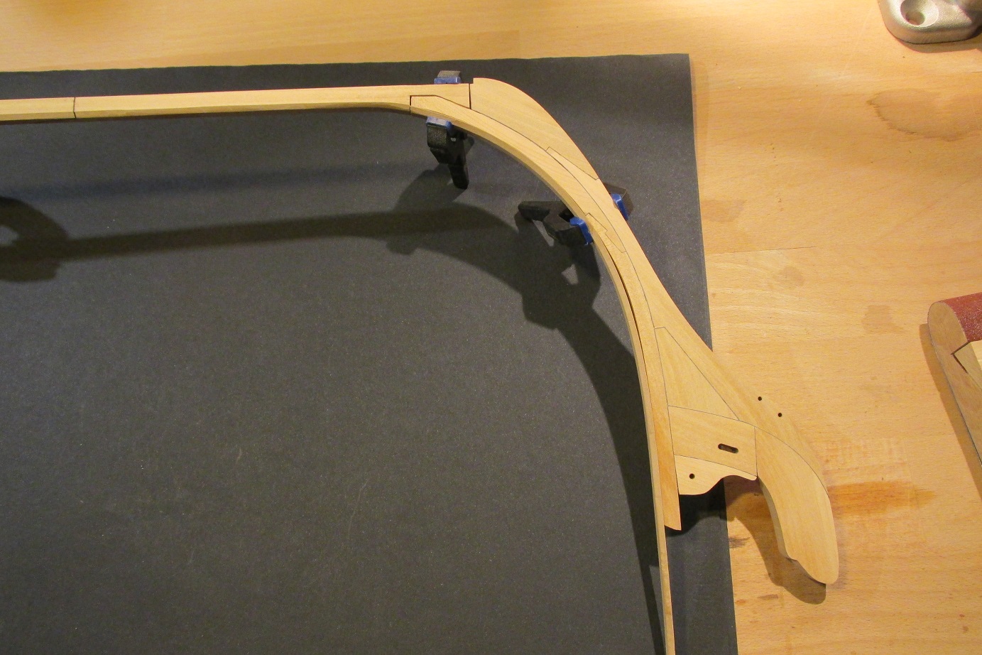 Doszlifowałem wszystkie elementy szkieletu i rozpocząłem sklejanie wraz z usztywnieniem. Podczas klejenia kolejnych grodzi przygotuję sobie kil.