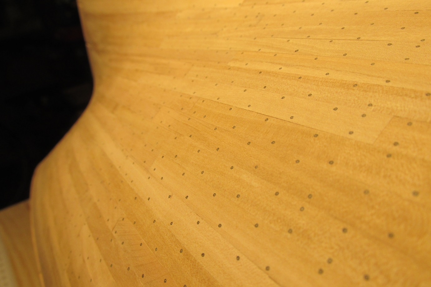 Kołkowanie zakończyłem, przynajmniej części dennej. Teraz szlifuję. W międzyczasie zrobiłem sobie znów przerwę w żmudnej pracy i wróciłem do płetwy sterowej.