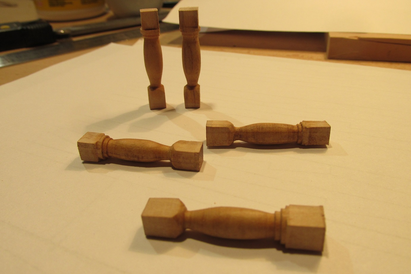 Ponieważ pod otwartymi gertingami pokładu górnego jednak coś będzie widać to postanowiłem zrobić kilka kolumn podpierających pokładniki. Mało widoczne elementy to dobra okazja do ćwiczeń :-)