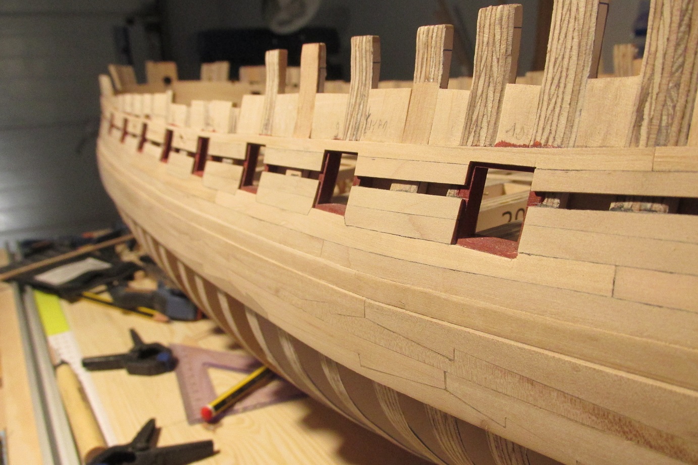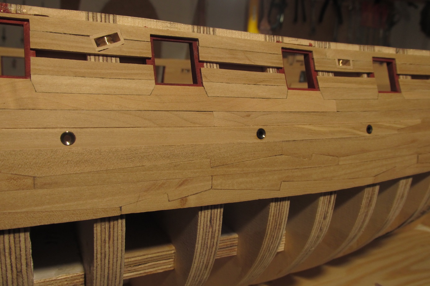 Lepiej jeszcze by bylo, gdybys te odplywniki robil z aluminium a nie z mosiadzu. Aluminium lepiej by imitowalo olow, z ktorego robiono te detale (scuppers).