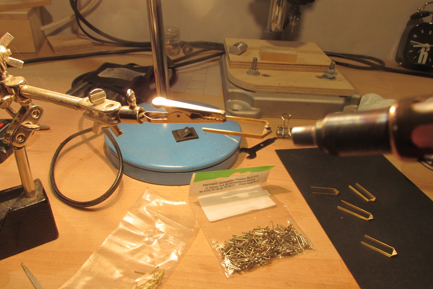 Zastanawiam się też nad kołkami odbojnicy, skłaniam się ku temu, aby zrobić je z miedzi, na zdjęciach poniżej średnica 0,8 i 0,5 mm. Chyba zdecyduję się na 0,5mm.