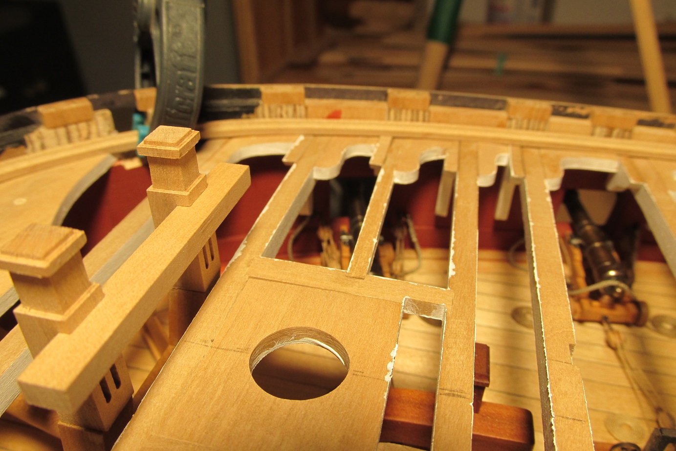 Montowanie pokładników zbliża się wielkimi krokami. Postanowiłem zrobić lampy, które będą wisiały pod nimi. Zacząłem też montować działa do pokładu działowego.