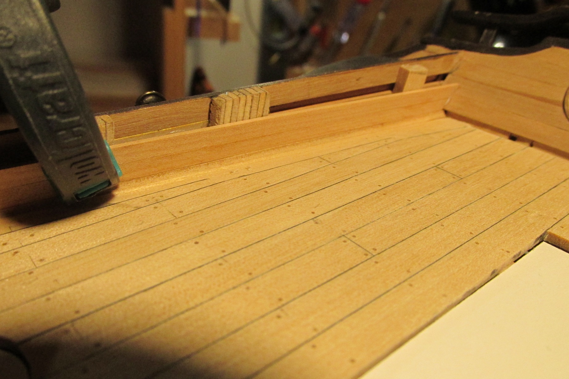 Cały czas pracuję nad górnymi pokładami i zabrałem się za nadburcia.