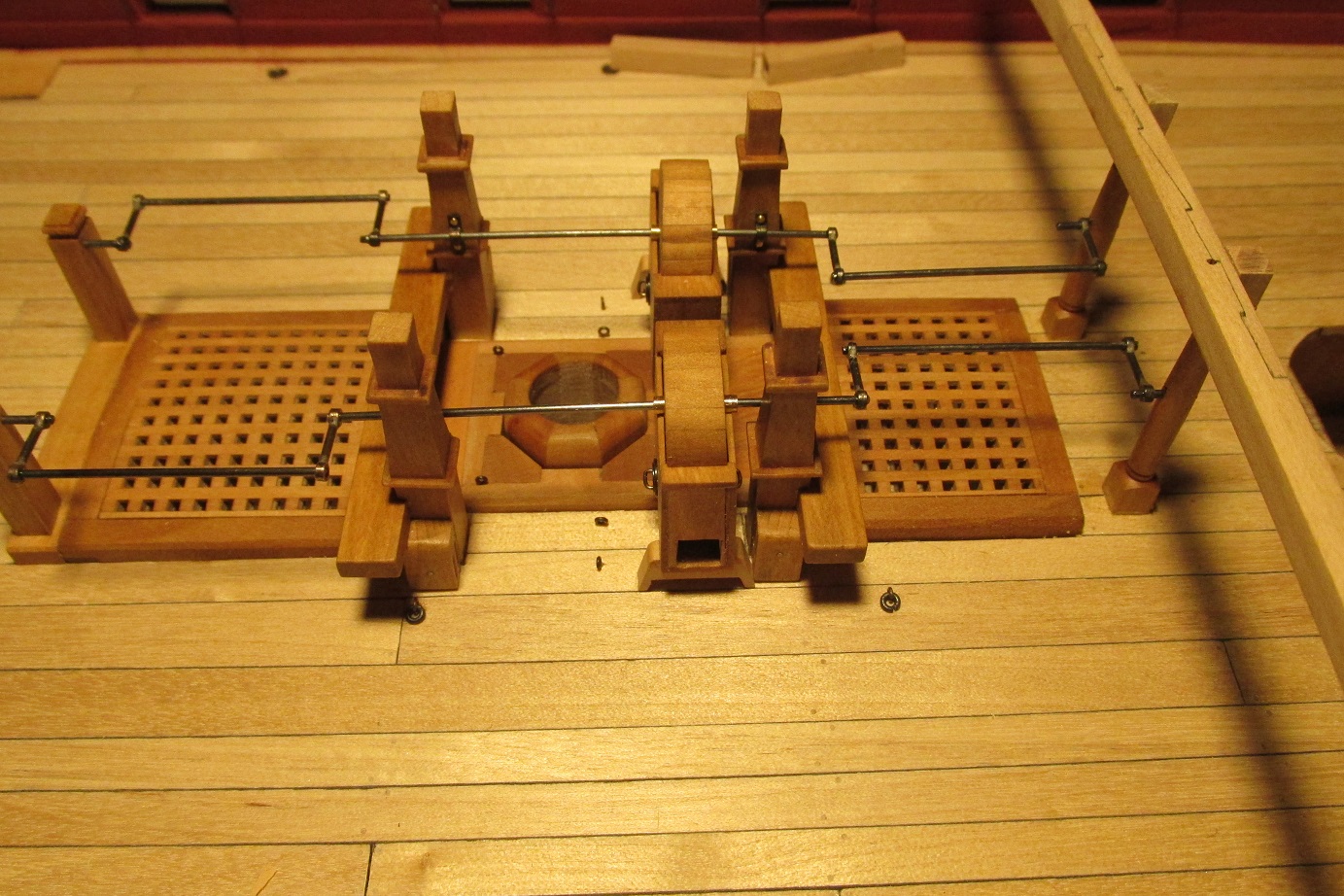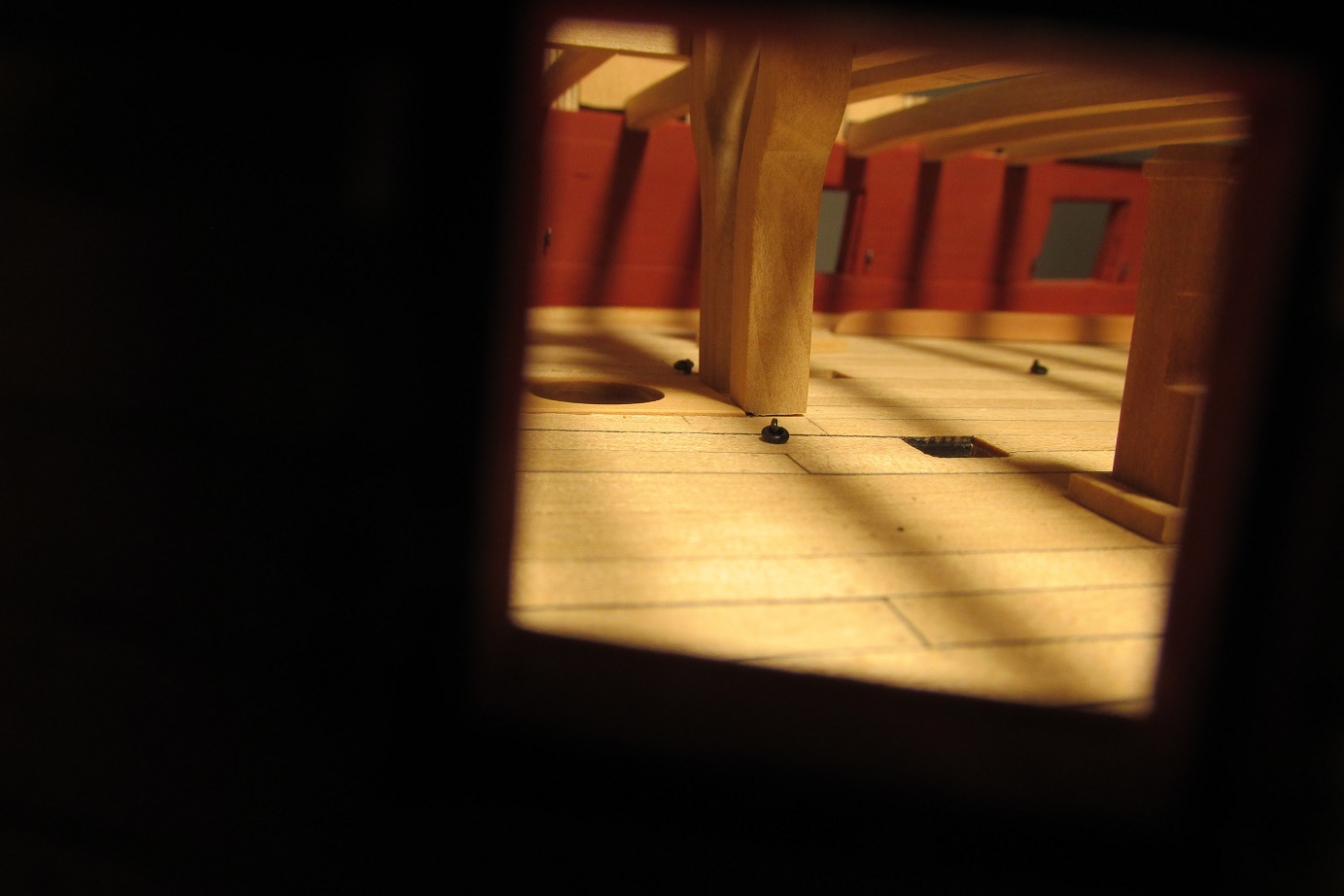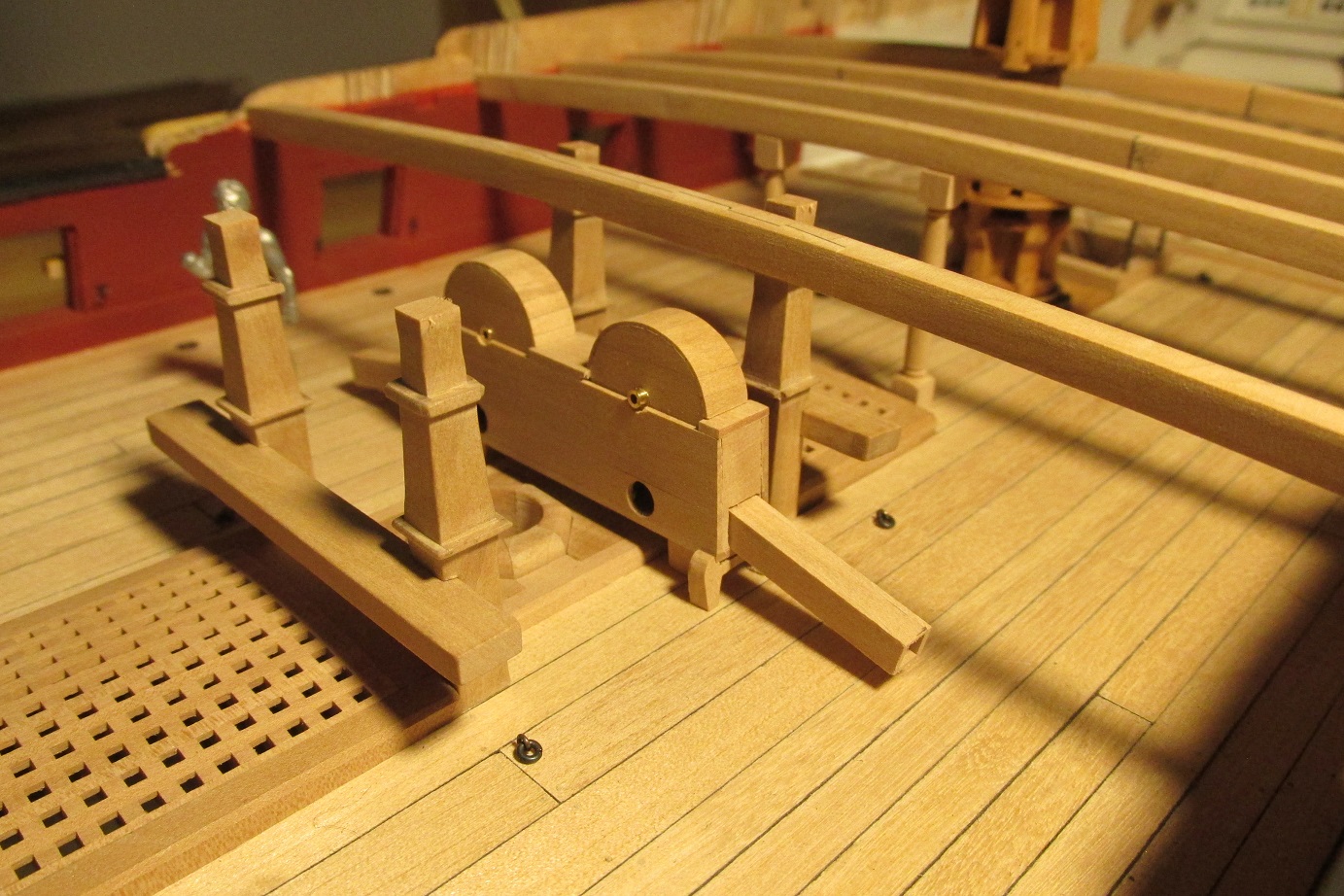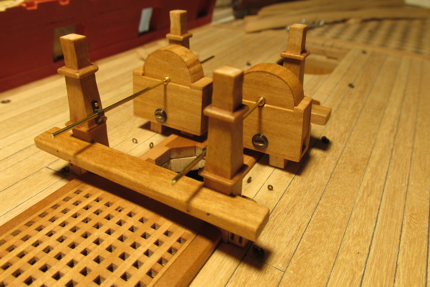 Myślałem o pompach. Na fregacie Sphinx (1775), HMS Pandora (1779), HMS Naiad (1797) są, jak widzę pompy (korbowe) jak na poniższym zdjęciu. Natomiast w planach HMS Enterprize takiej nie ma, czy to możliwe żeby ta właśnie fregata różniła się tak bardzo od pozostałych tej samej klasy i z tego samego okresu?