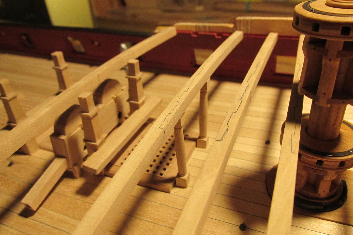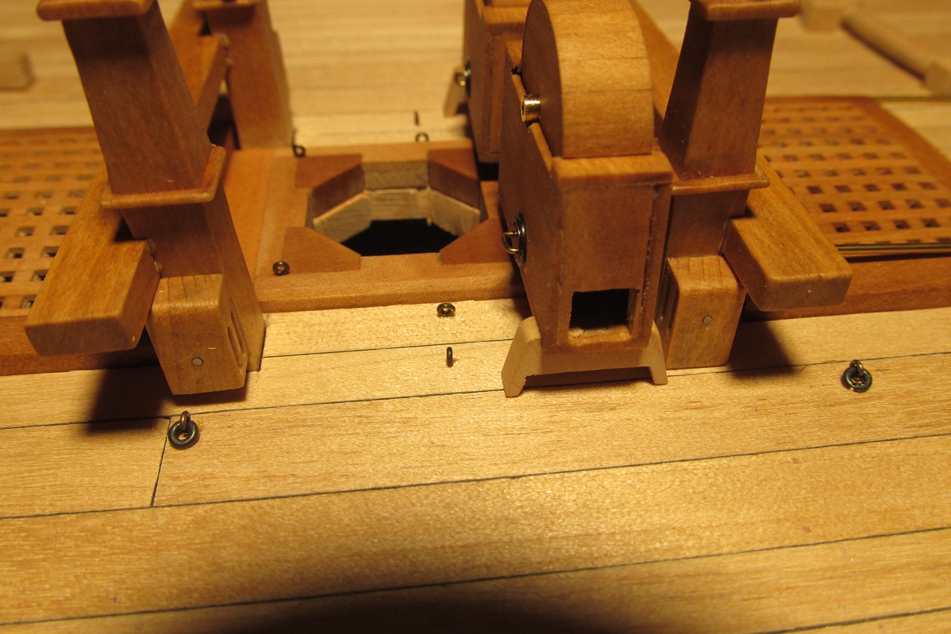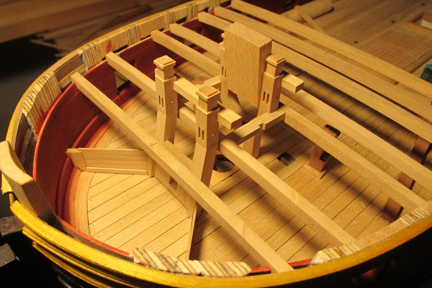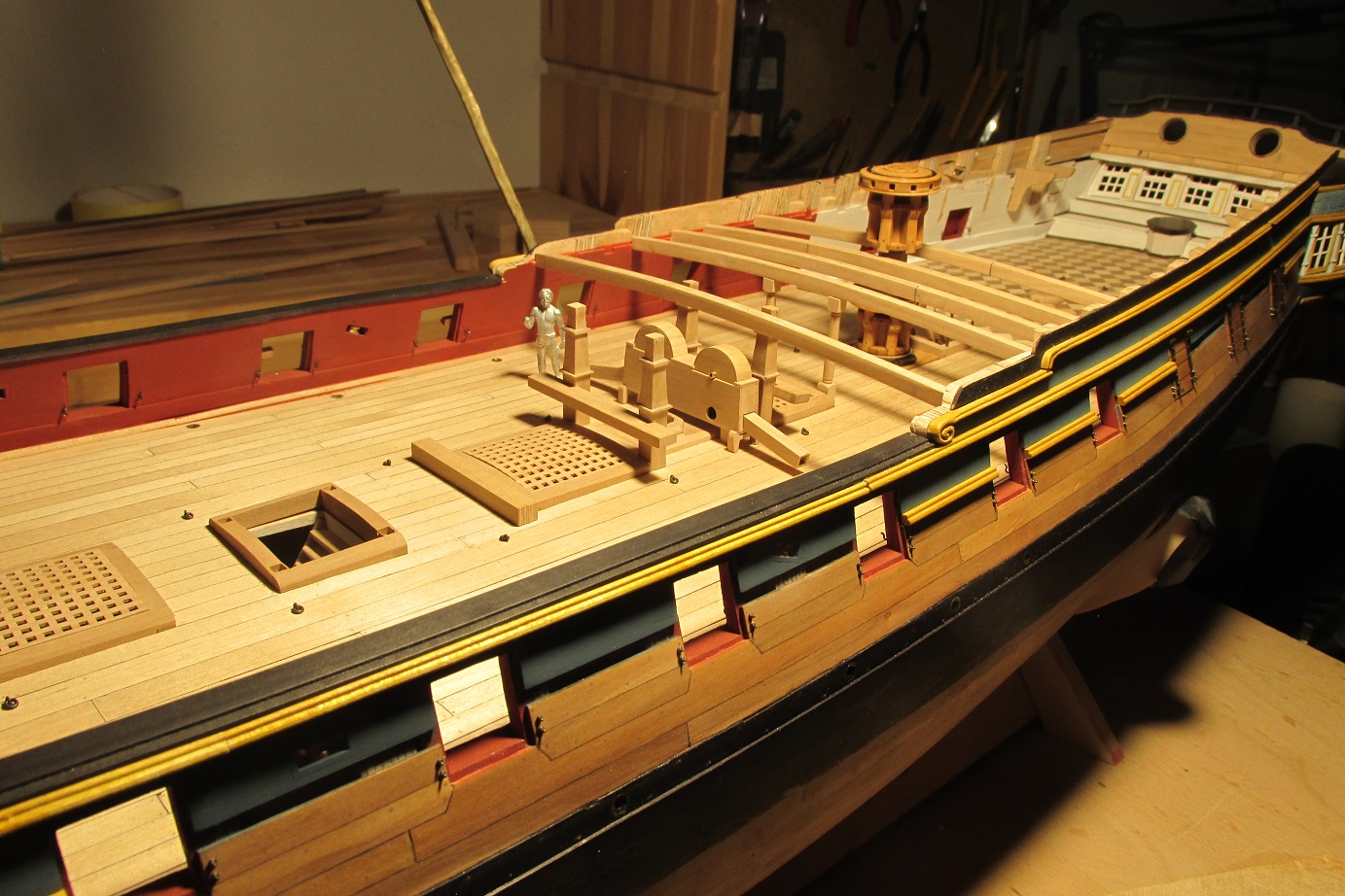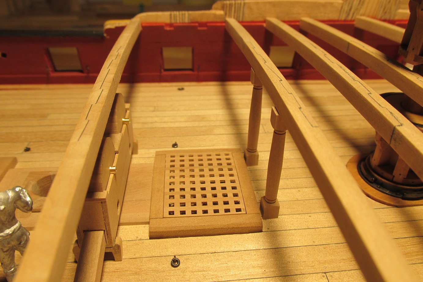 Myślałem o pompach. Na fregacie Sphinx (1775), HMS Pandora (1779), HMS Naiad (1797) są, jak widzę pompy (korbowe) jak na poniższym zdjęciu. Natomiast w planach HMS Enterprize takiej nie ma, czy to możliwe żeby ta właśnie fregata różniła się tak bardzo od pozostałych tej samej klasy i z tego samego okresu?