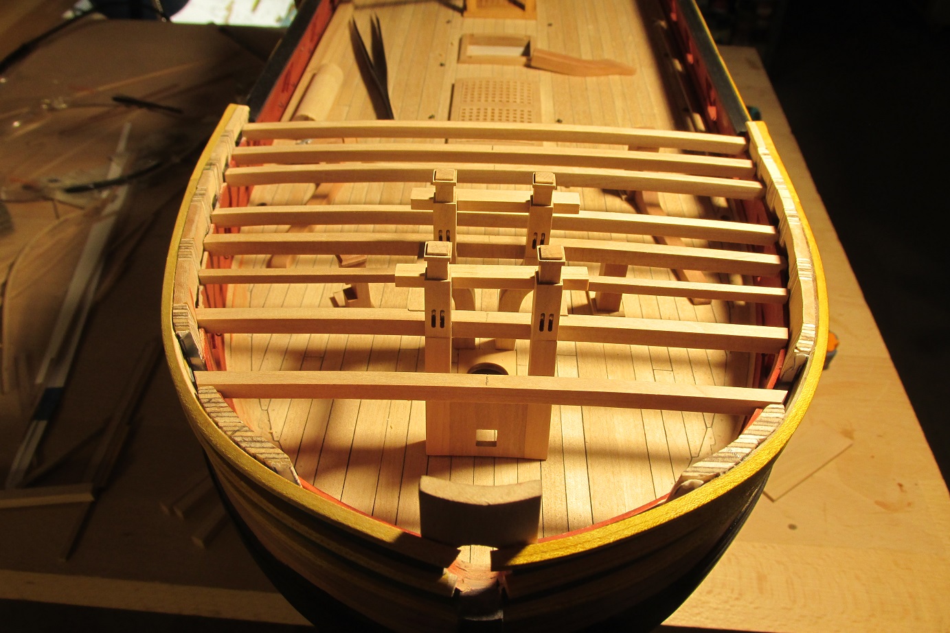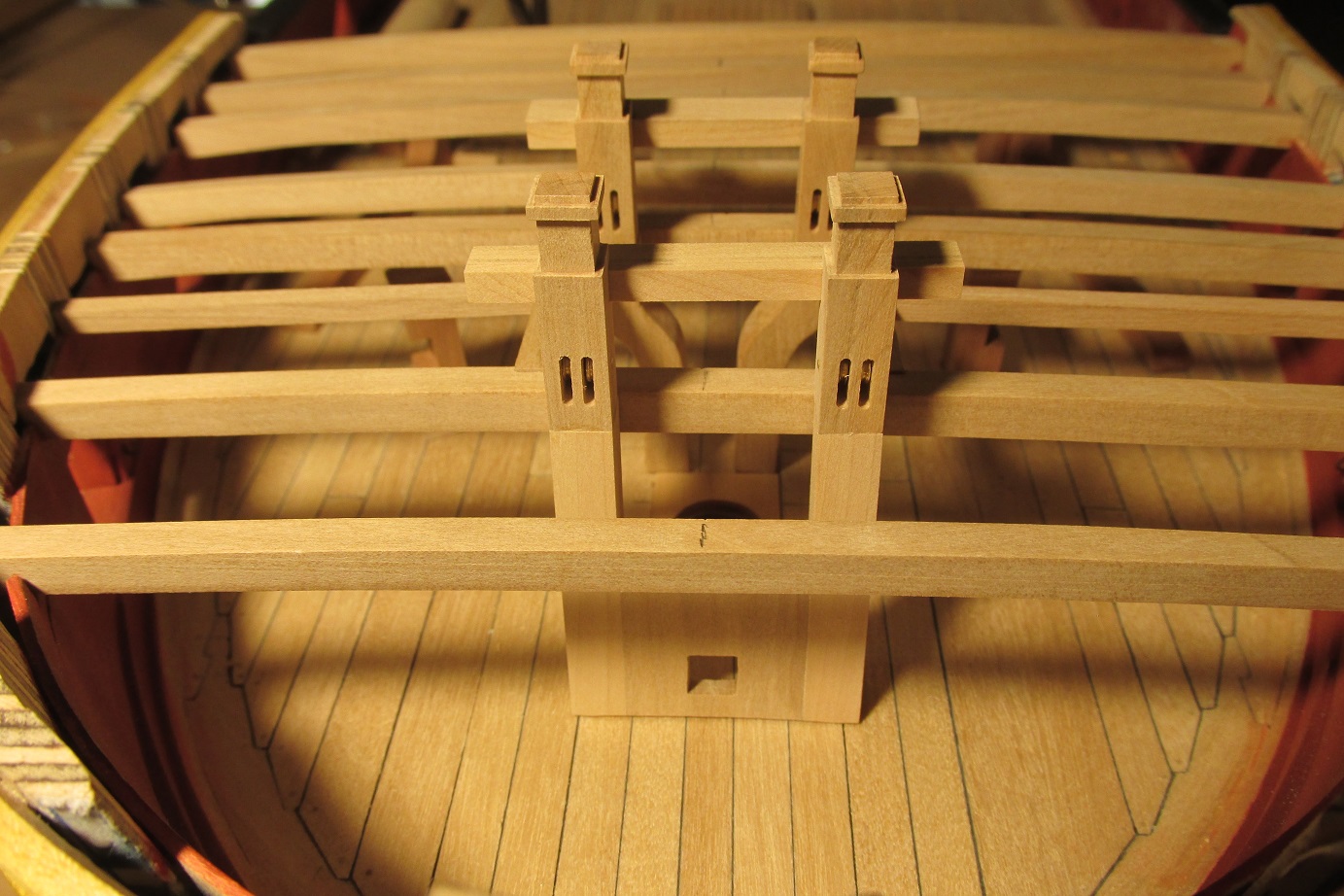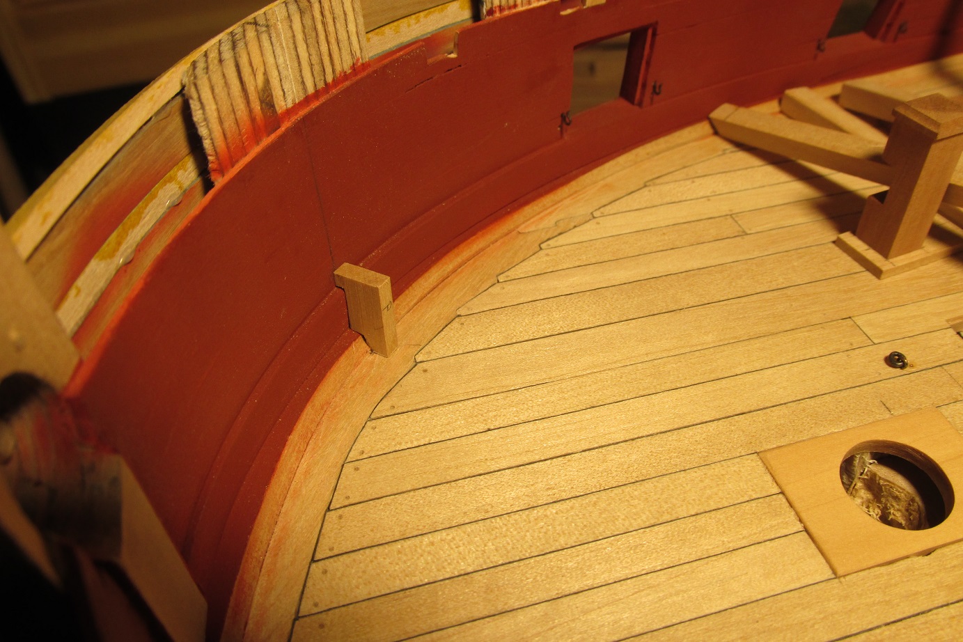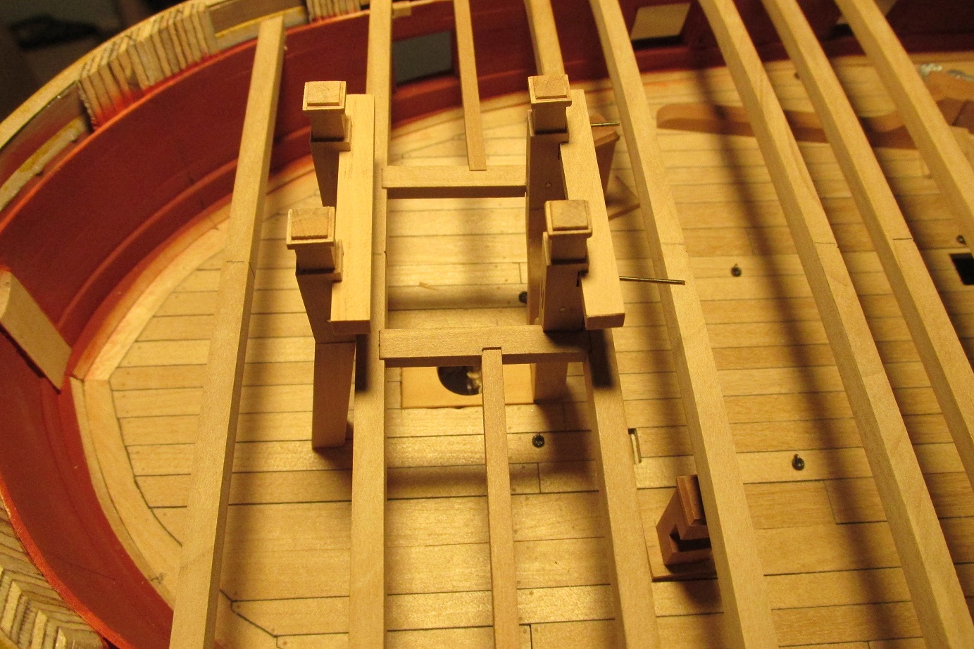 Myślałem o pompach. Na fregacie Sphinx (1775), HMS Pandora (1779), HMS Naiad (1797) są, jak widzę pompy (korbowe) jak na poniższym zdjęciu. Natomiast w planach HMS Enterprize takiej nie ma, czy to możliwe żeby ta właśnie fregata różniła się tak bardzo od pozostałych tej samej klasy i z tego samego okresu?