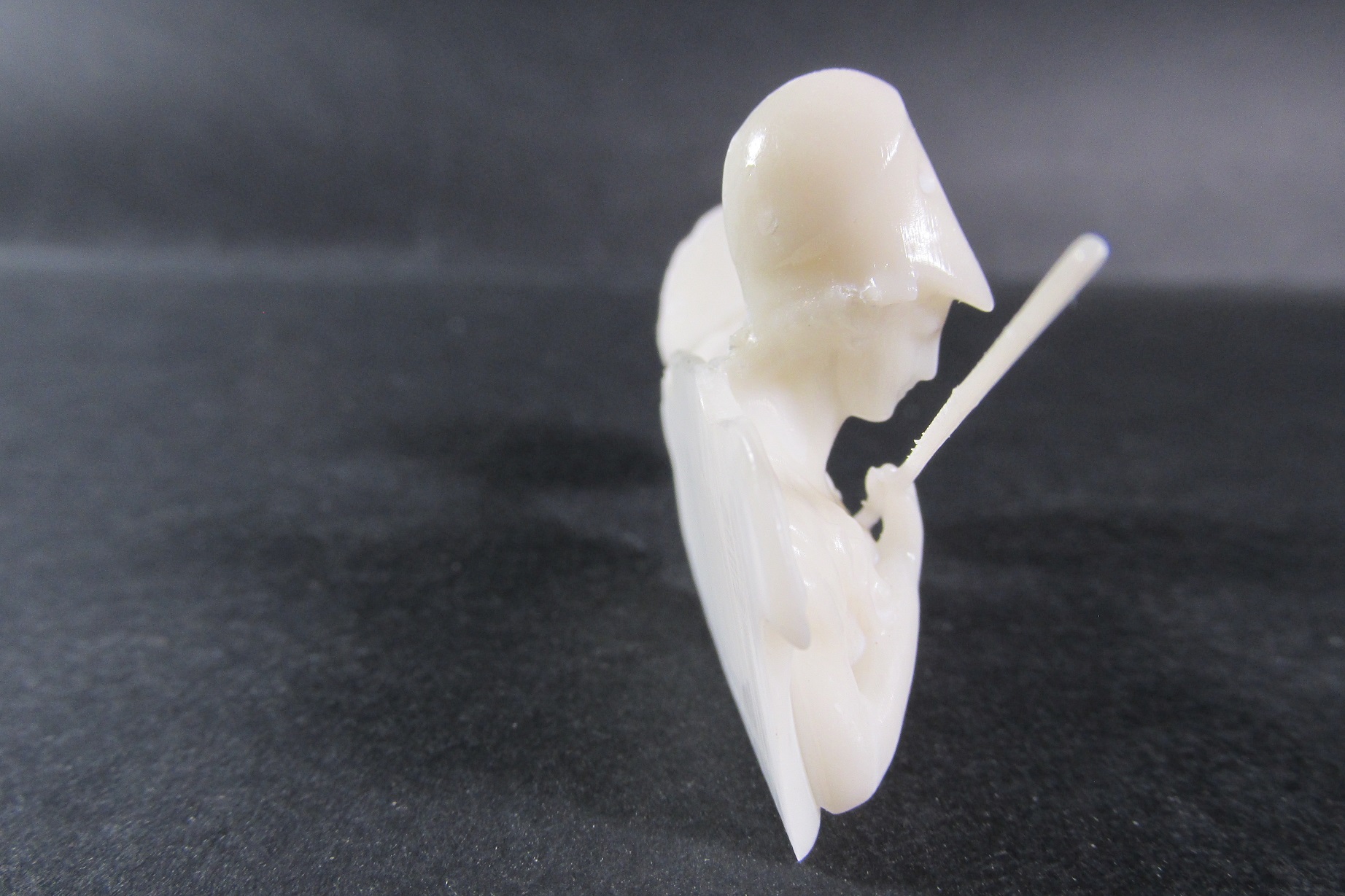 Ostatnimi czasy, w wolnych chwilach pracowałem nad rzeźbą Ateny na rufę. Ciągle zajmuje to sporo czasu, choć umiejętności obsługi programu są coraz lepsze. Zakończyłem dziś drukowanie. Druk jest zrobiony w żywicy wodno zmywalnej. Już nigdy nie użyję innej. Pierwszy wydruk wyszedł zbyt duży, proporcje do cherubinów i samej rufy były niewłaściwe. Musiałem więc pomniejszyć i ponowić drukowanie. Teraz siedzę nad rzeźbami cherubinów okalających rzeźbę Ateny. Po skończeniu będzie wydruk, malowanie całości i montaż na modelu.