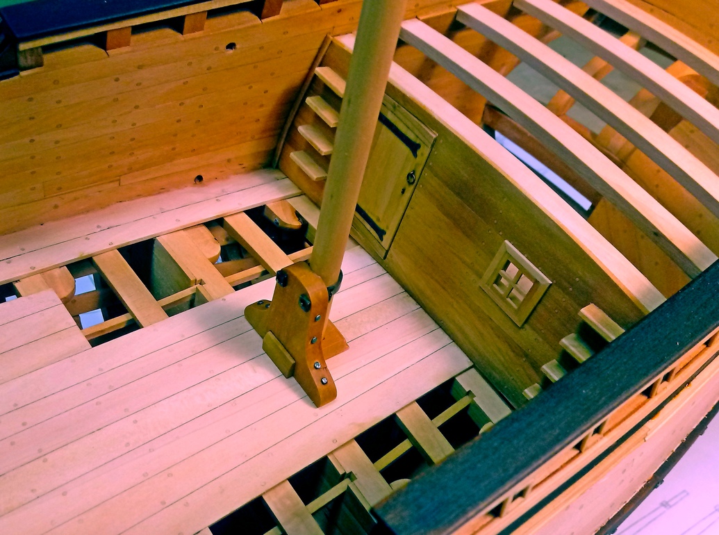 Trochę drobnicy przybyło; kabestan, ster wraz z rumplem i para przymasztowych kołkownic: