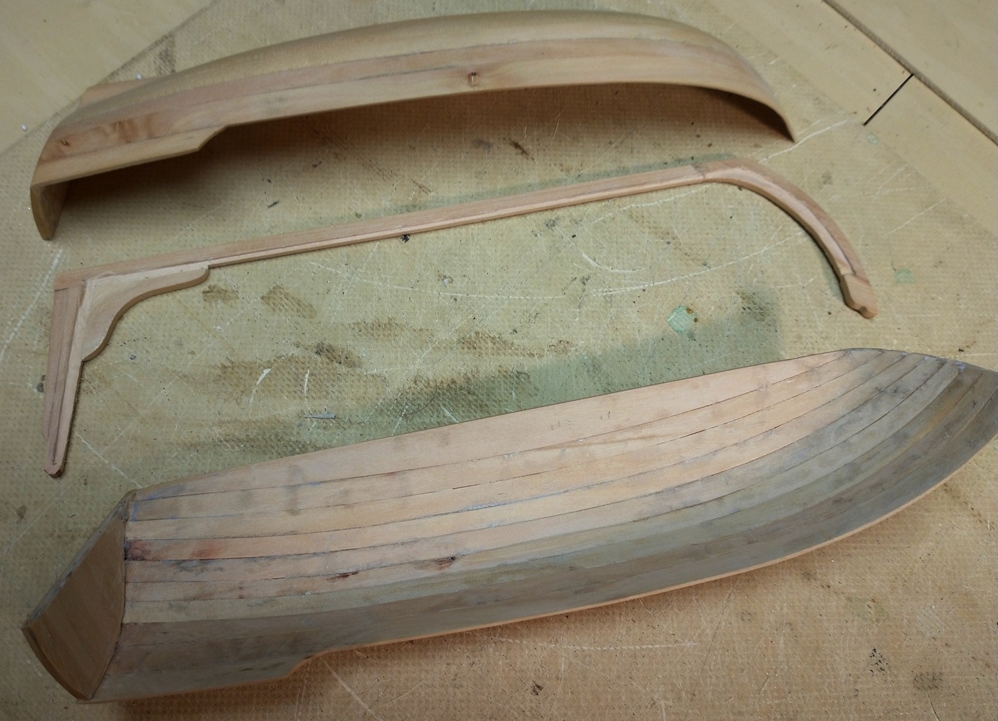 Oczyściłem wnętrze skorup z resztek kartonu i kleju i wykonałem stępkę.