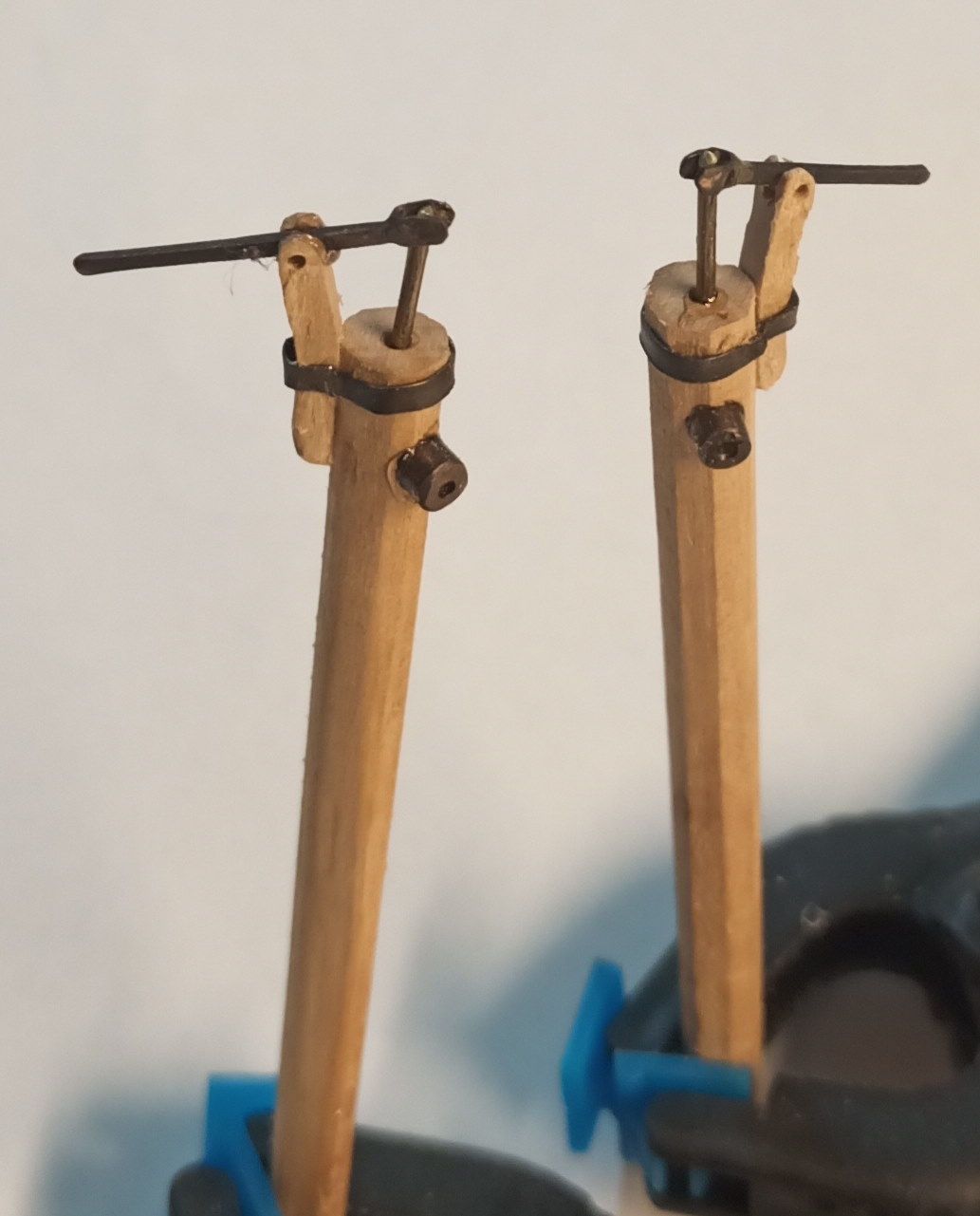 Na razie rozklepuję z drutu zawiasy na pokrywy od wioseł i zrobiłem pompki (jutro jeszcze je wyszlifuję)
