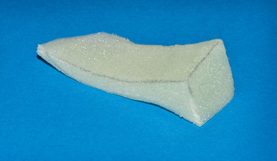 Z twardszej pianki zrobiłem elementy wypełnień, dopasowując kształtem do pustej przestrzeni. Sprawdzę czy uzyskam bardziej obły kształt niż z drugiej strony.