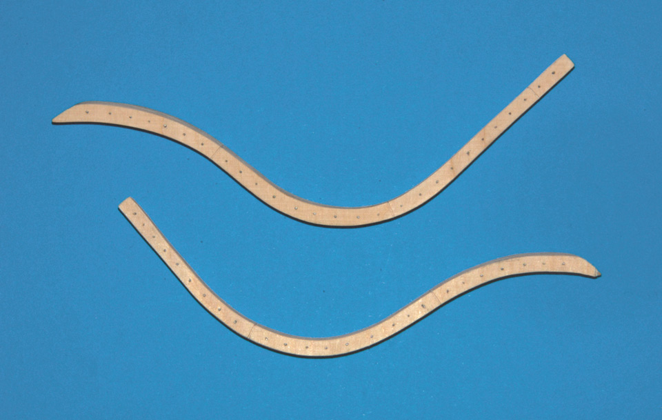 Wykonałem belki: progową (pod ambrazurami) i nad ambrazurami z wycięciami na stewę, rumpel z uwzględnieniem ambrazur.