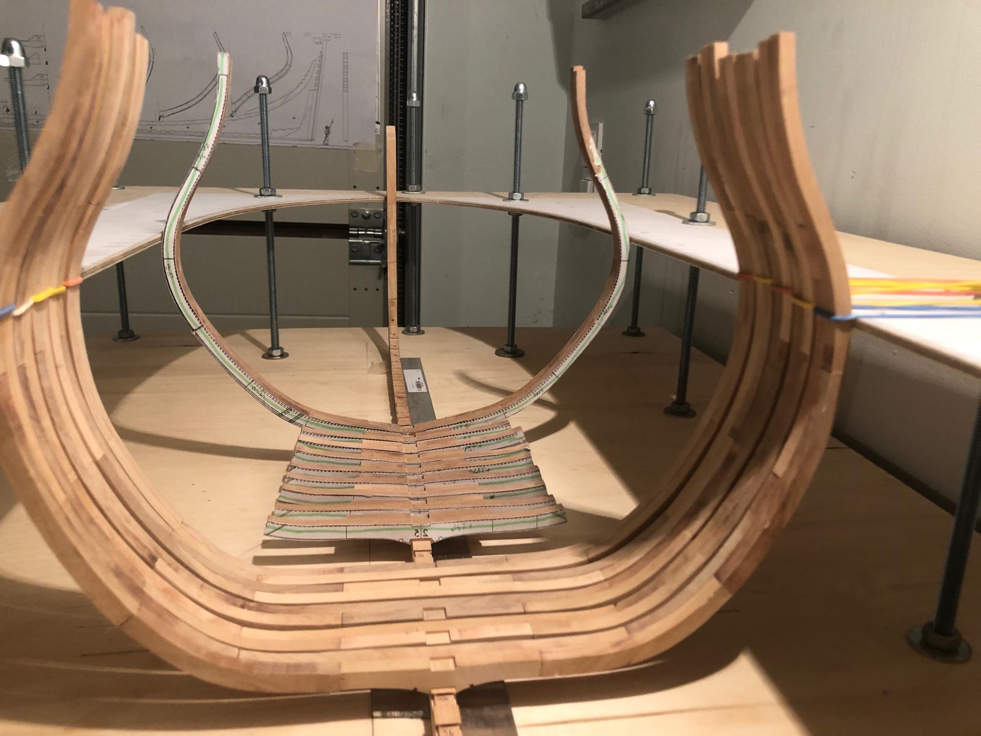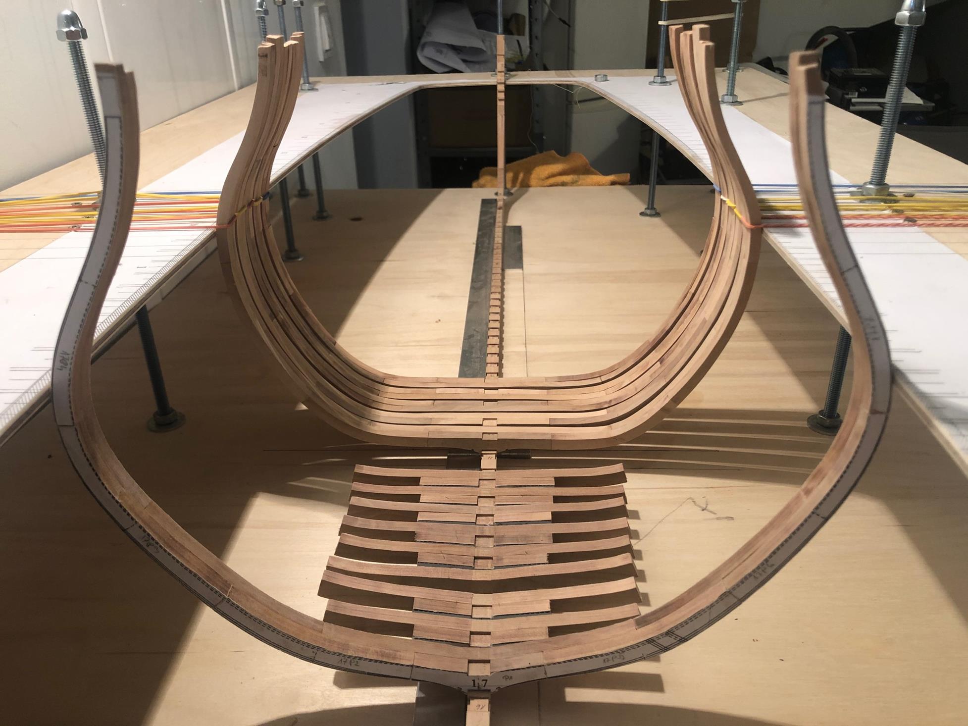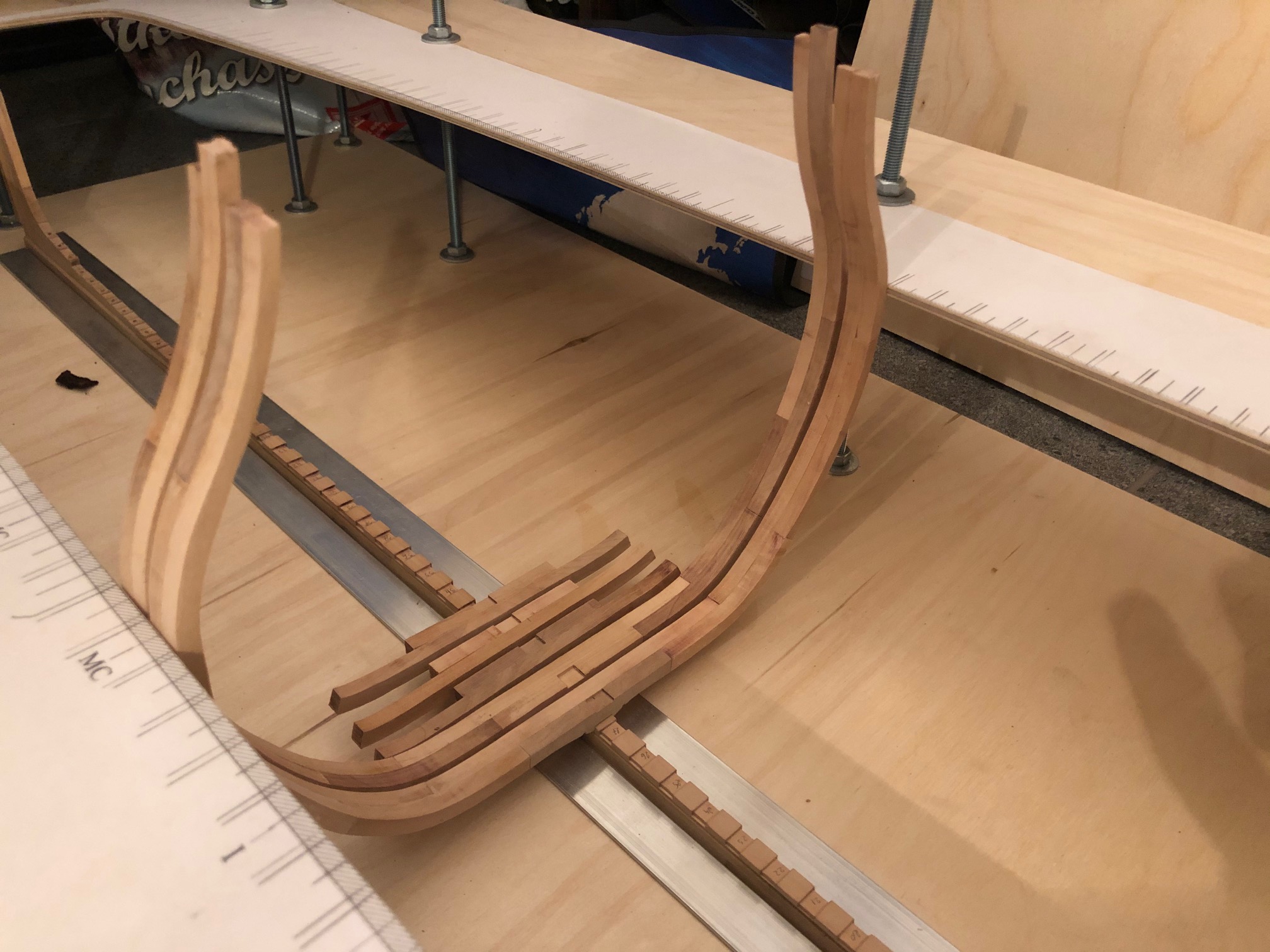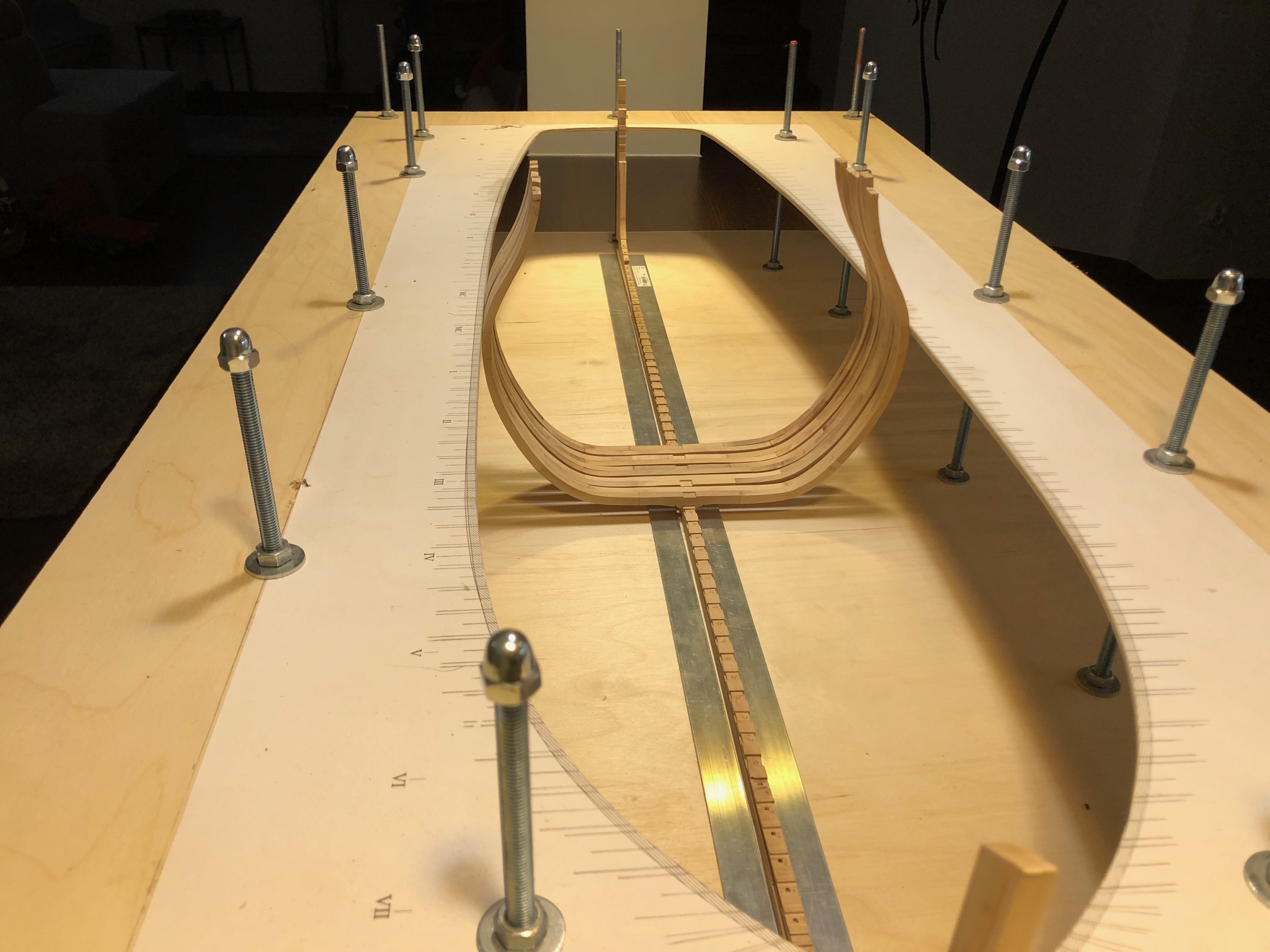 Pomału kleję wręgi. Sprawiłem sobie heblarkę, co znacznie sprawę przyśpiesza.