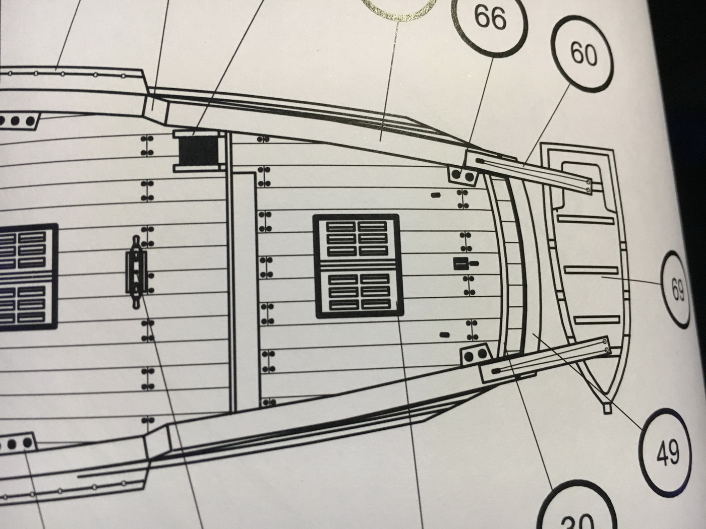 Sławku w planach ani w instrukcji nie ma tam kołków. Wiem, że wg teorii powinny być, ale nie chciałem przesadzić z kołkami na głównym pokładzie, zostawiając pokład rufowy całkowicie bez kołków.