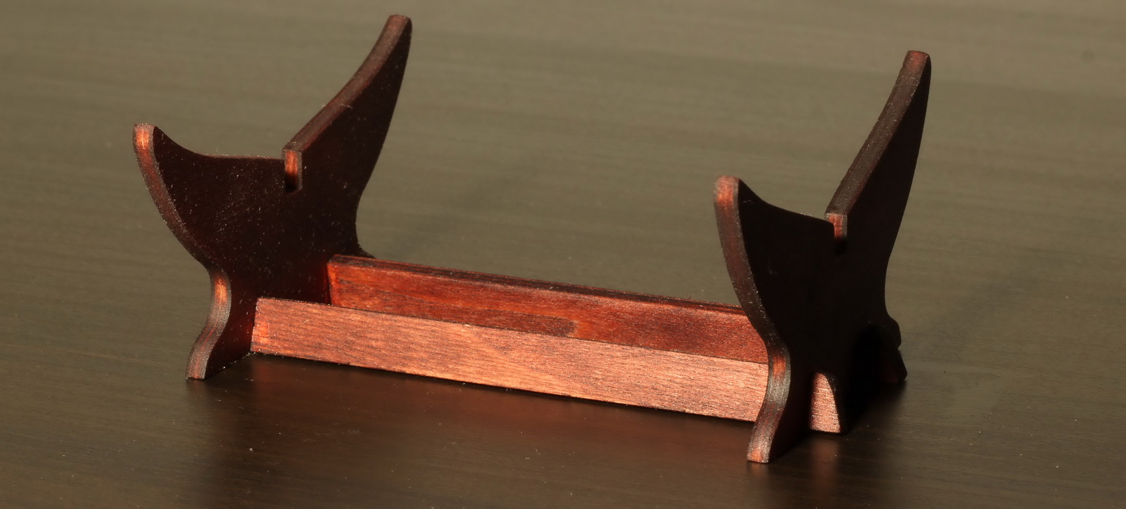 Podstawka z zestawu, pociągnięta bejcą mahoniową, a później olejem: