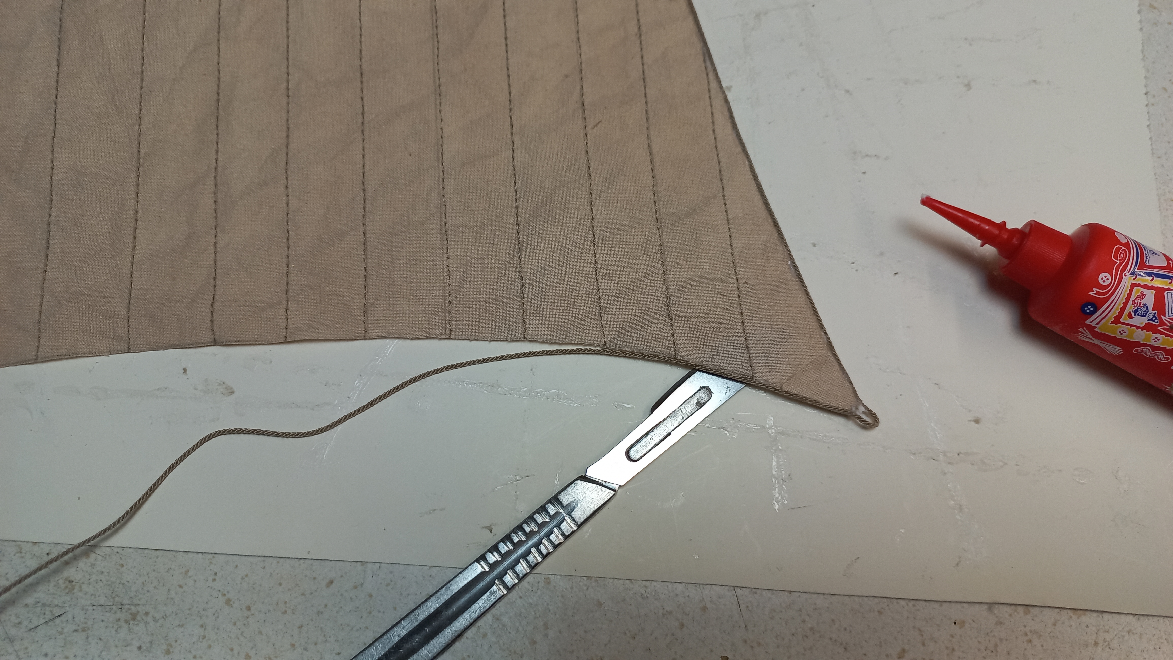 Pora na żagle.Materiał cienkie płótno lniane.Liklina oczywiście klejona.Klej Magik z aplikatorem trzyma dość mocno.Nie odkleja się podczas maltretowania przy formowaniu.Podejrzewam,że na mokro też by dał radę.Pozdrawiam.Kazimierz.